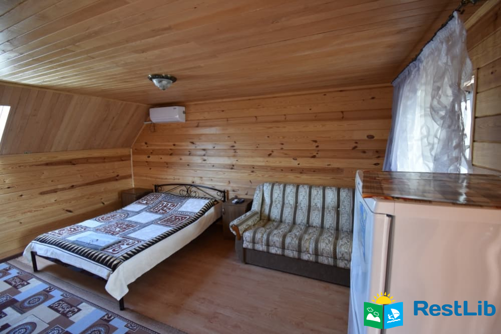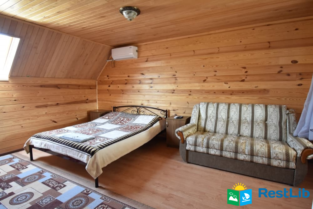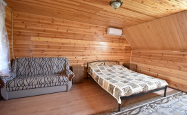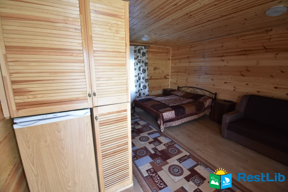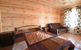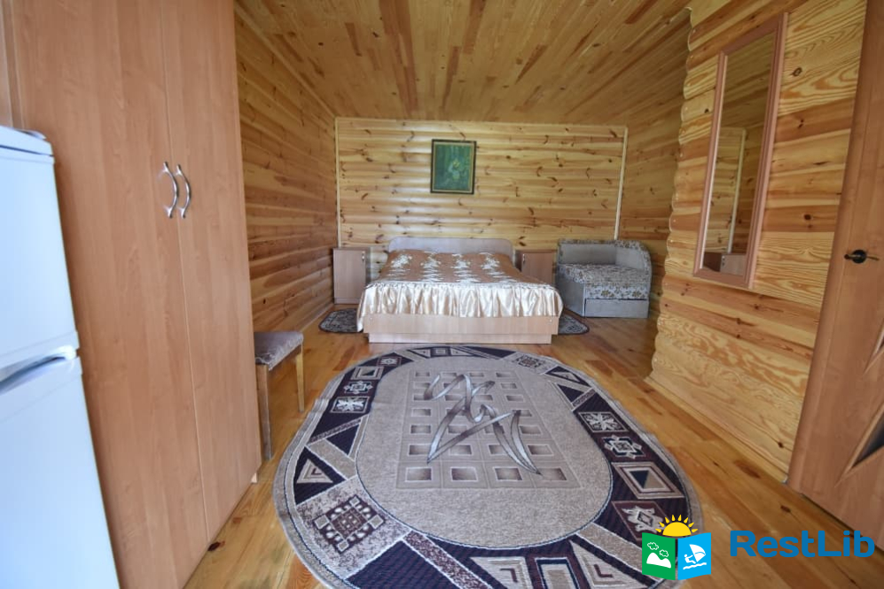 До послуг гостей 2 дерев'яних будиночки й 1 двоповерховий.