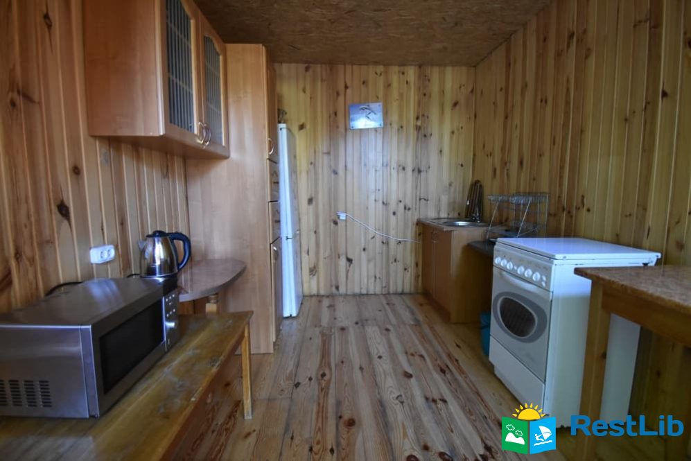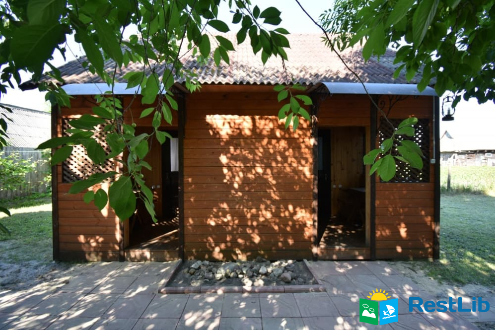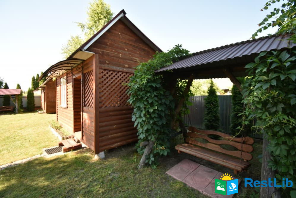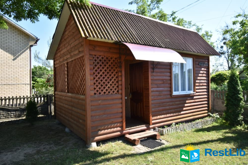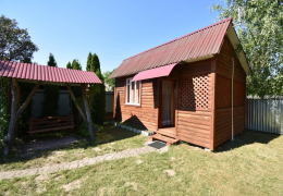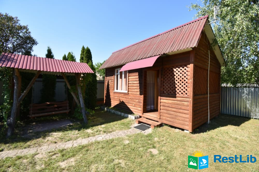 В наявності 1 такий будинок. Окремий будинок на одну компанію на 4 особи. В будинку : дві двомісні кімнати (двоспальне ліжко, телевізор, комод, крісло). Санвузол (душ, туалет, умивальник), кухня (кухонний гарнітур , техніка, посуд) - на будинок. Біля будинку альтанка з мангалом для цього будинку, гойдалка, дитячий майданчик,. До кожного номеру тераса біля входу.