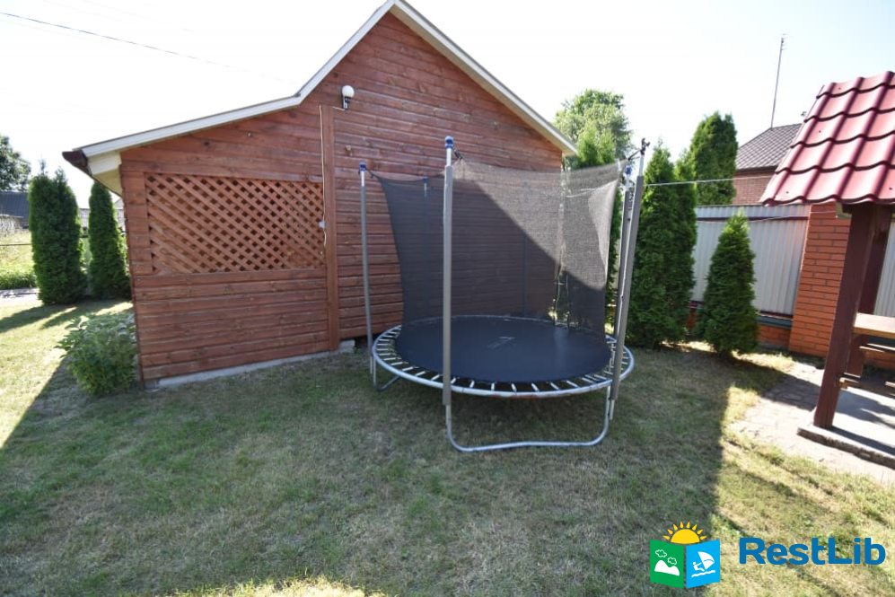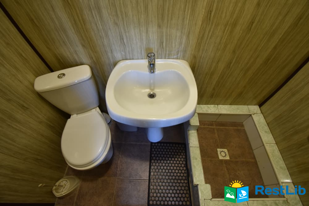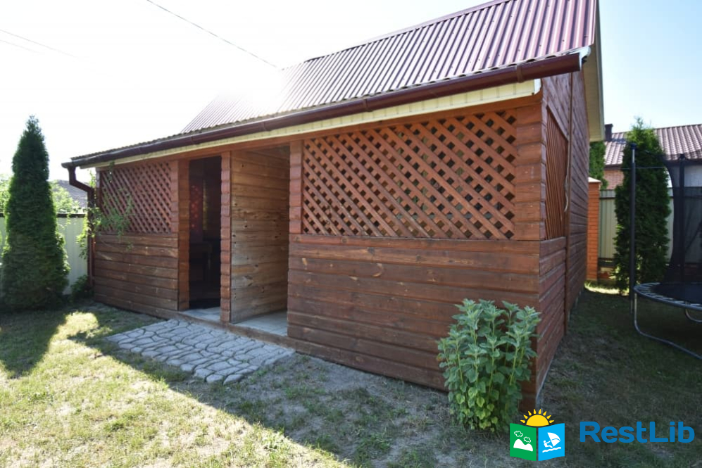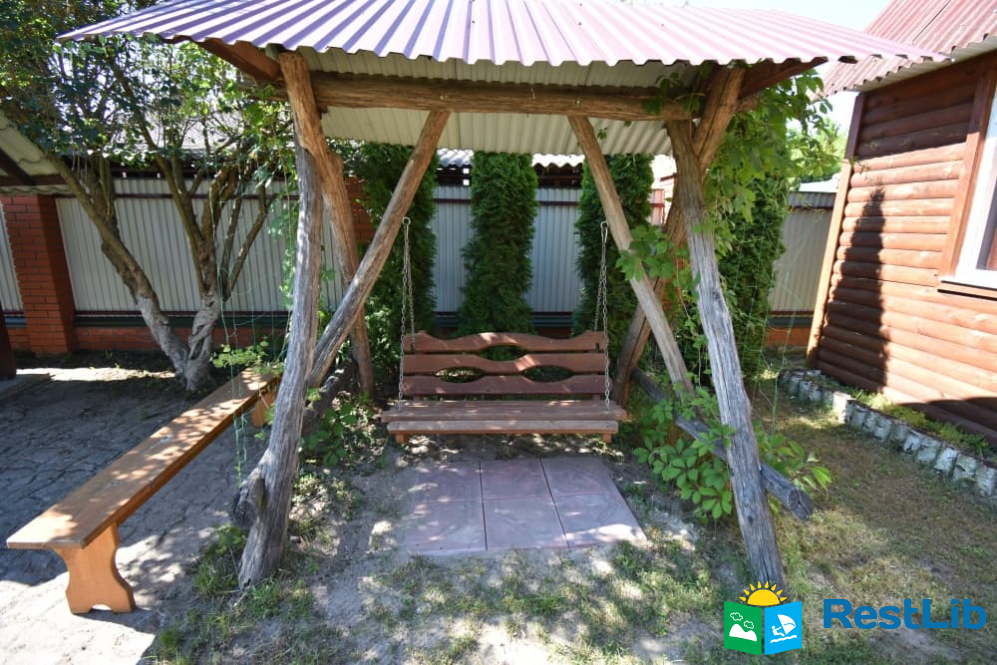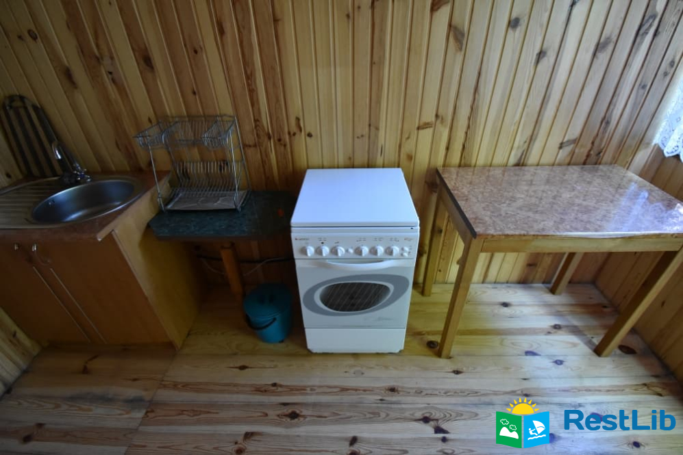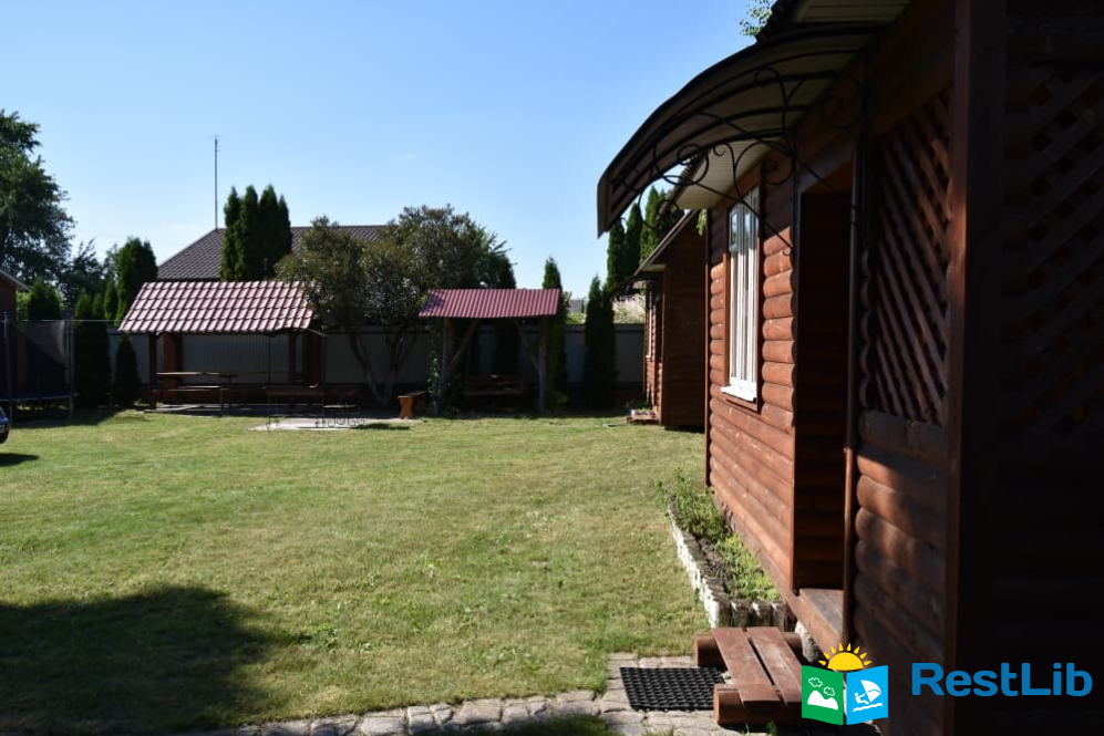 В наявності 1 такий будинок. Окремий будинок на одну компанію на 4 особи. В будинку : дві двомісні кімнати (двоспальне ліжко, телевізор, комод, крісло). Санвузол (душ, туалет, умивальник), кухня (кухонний гарнітур , техніка, посуд) - на будинок. Біля будинку альтанка з мангалом для цього будинку, гойдалка, дитячий майданчик,. До кожного номеру тераса біля входу.