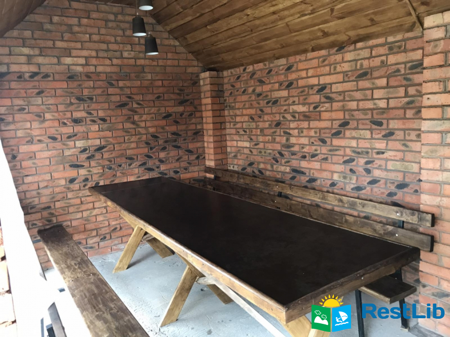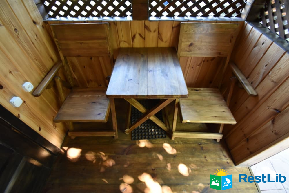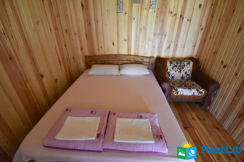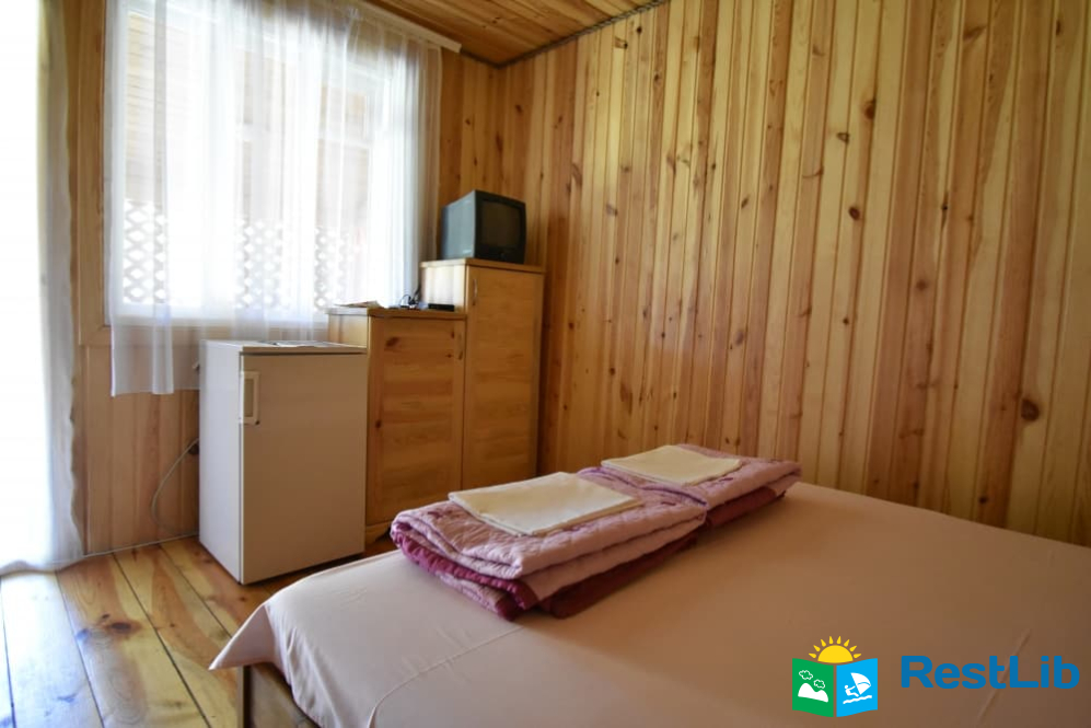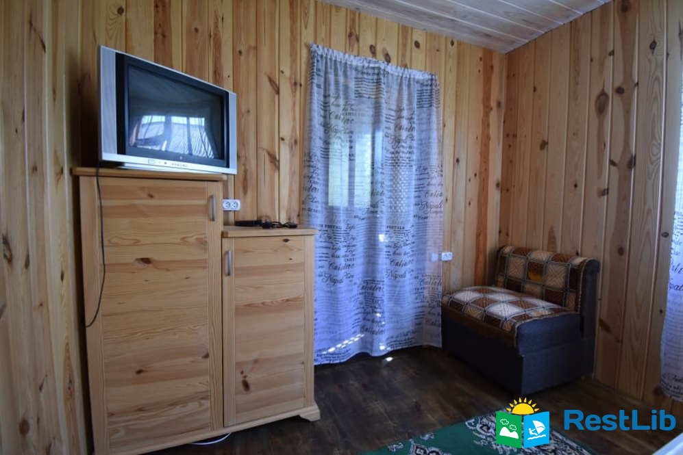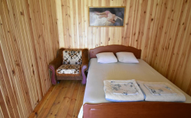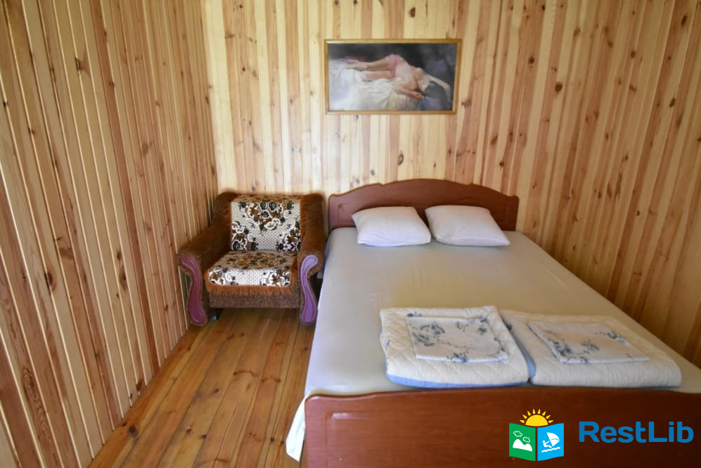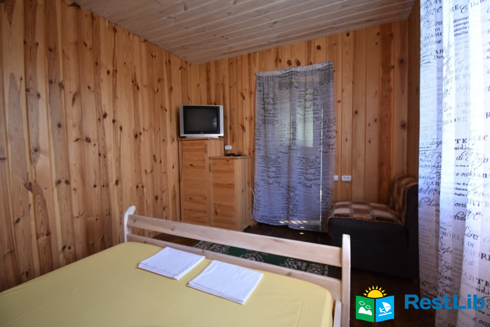 Один будинок здається покімнатно на 2 двомісних номери. В кожному номері: тераса біля входу з столом та лавками, двоспальне ліжко + розкладний диван, холодильник, телевізор, комод.
