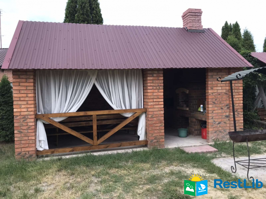 Є на відокремленій території будинок на одну компанію з 4 осіб. В будинку : дві двомісні кімнати (двоспальне ліжко, телевізор, комод, крісло). Санвузол (душ, туалет, умивальник), кухня (кухонний гарнітур , техніка, посуд) - на будинок. Біля будинку альтанка з мангалом, гойдалка, дитячий майданчик,. До кожного номеру тераса біля входу. Може здаватися і покімнатно (550 грн за номер).
