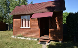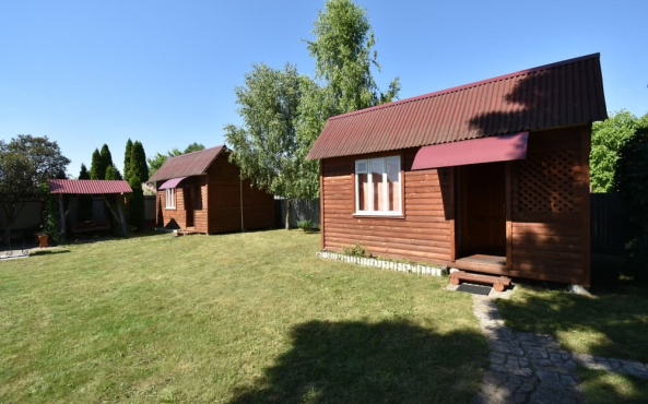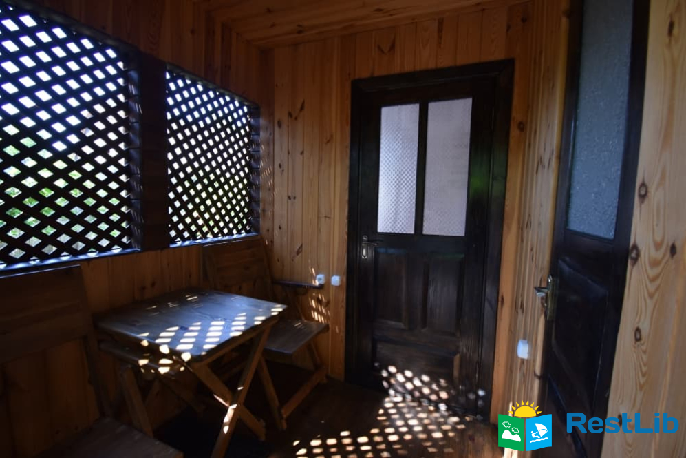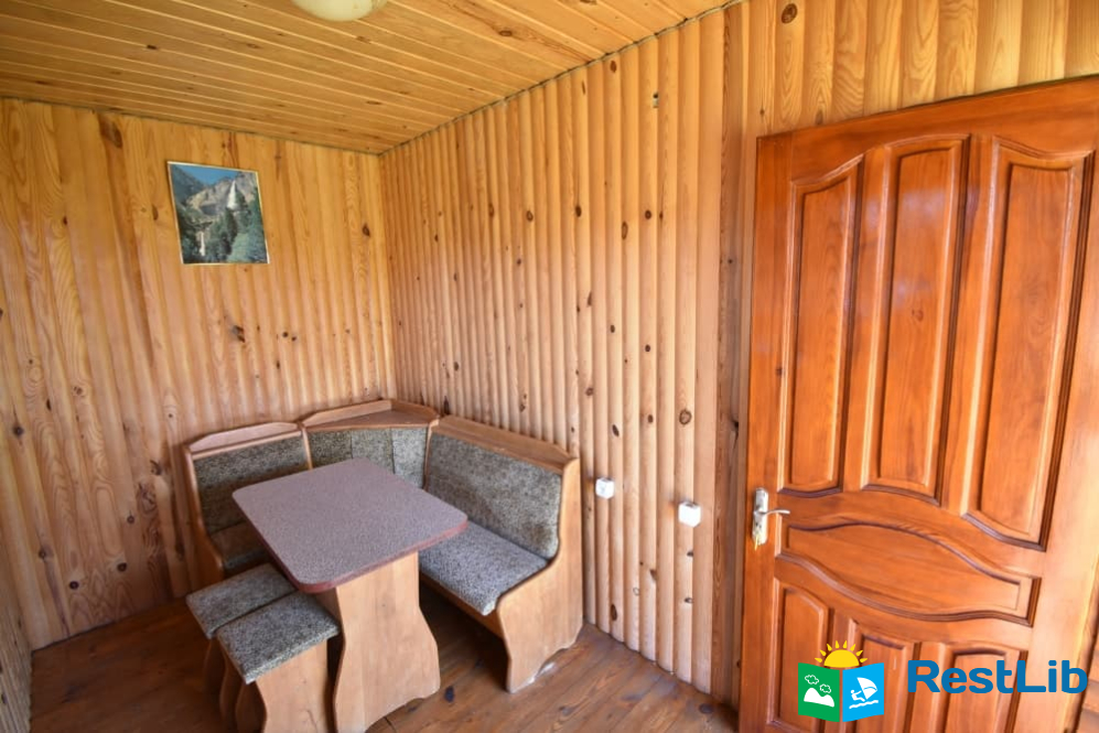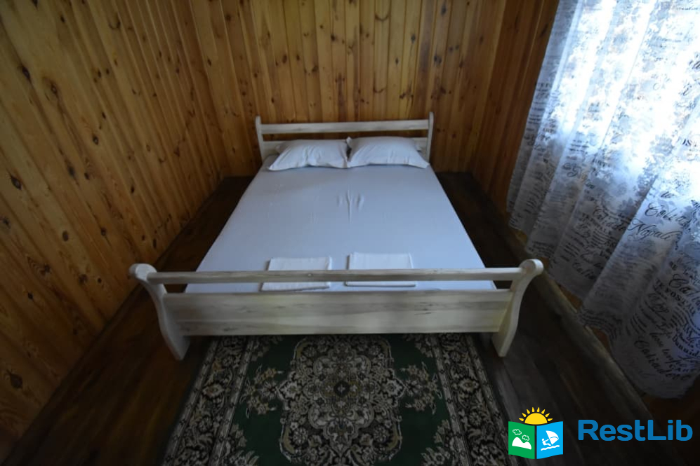 В наявності 3 ідентичних будинки. В кожному: перед входом крита тераса з столом та лавками, в кімнаті двоспальне + двоярусне ліжко, телевізор, холодильник, комод для речей. Кухня , санвузол -загальні на території для 4 будиночків. Якщо замовлення на одну ніч то ціна на 100 грн вища.