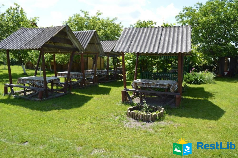 На території знаходяться альтанки під кожен номер, 5 мангалів, барбекю, дитячий майданчик.