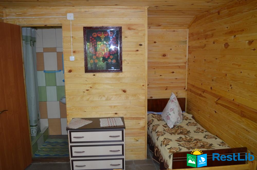 Окремий будинок в садку, дві кімнати на 4-6 чоловік. В кожній кімнаті є: два ліжка, санвузол, гарячий душ, тумбочка. Кухня в прихожій, на дві кімнати.