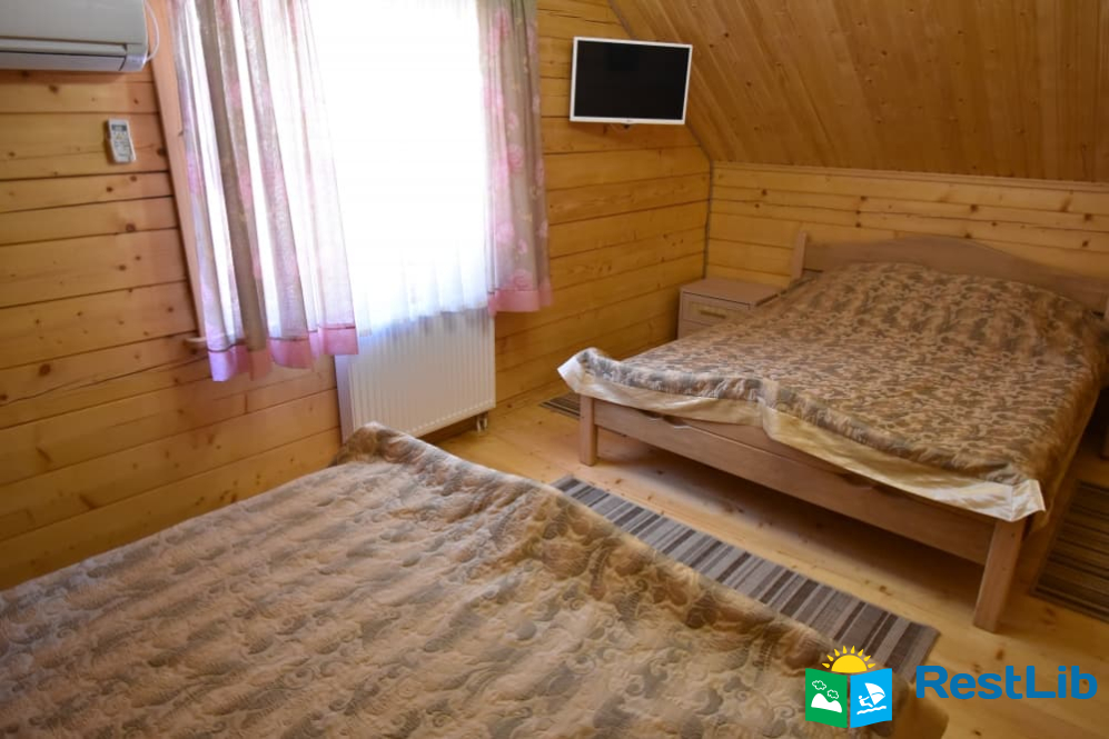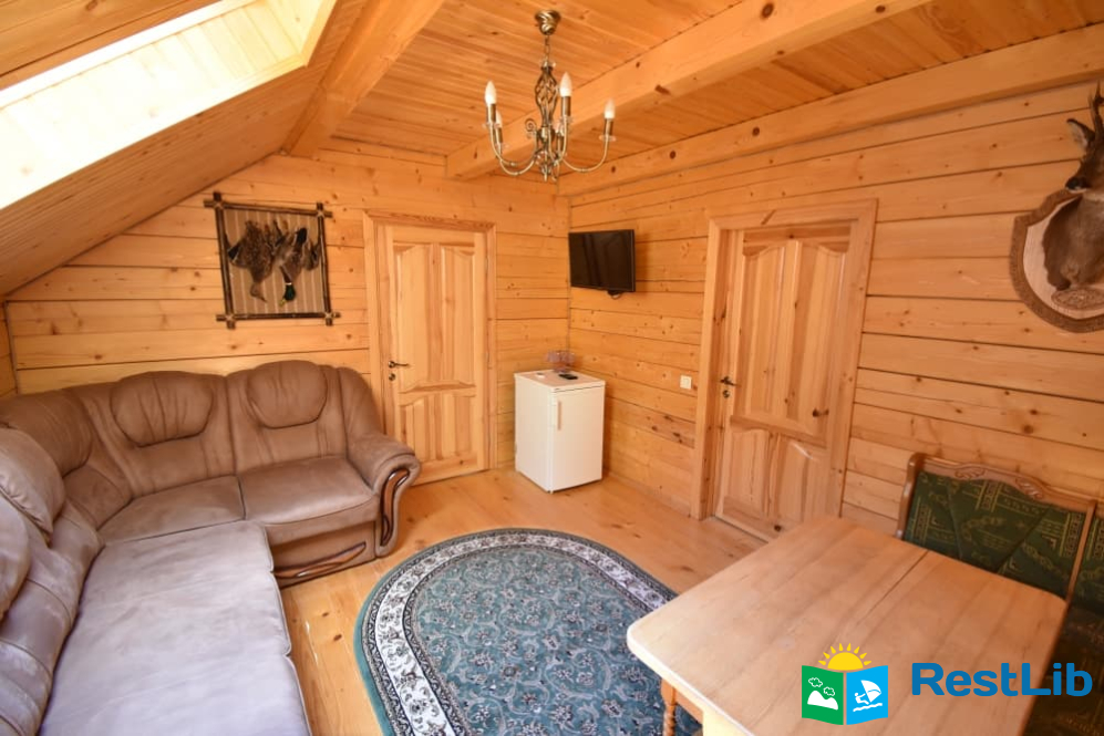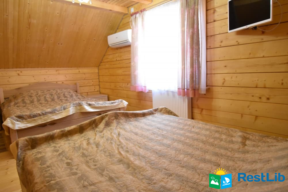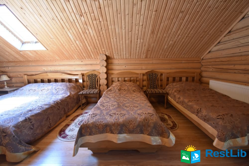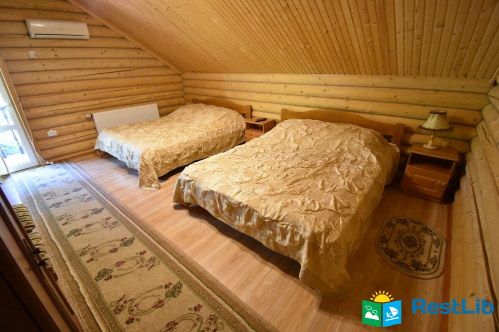 Для гостей пропонуємо 4 двоповерхові котеджі з брусу. Один задється повністю під одну компанію, інші по номерах. Кожен номер та котедж облаштований усім необхідним для комфортного відпочинку.