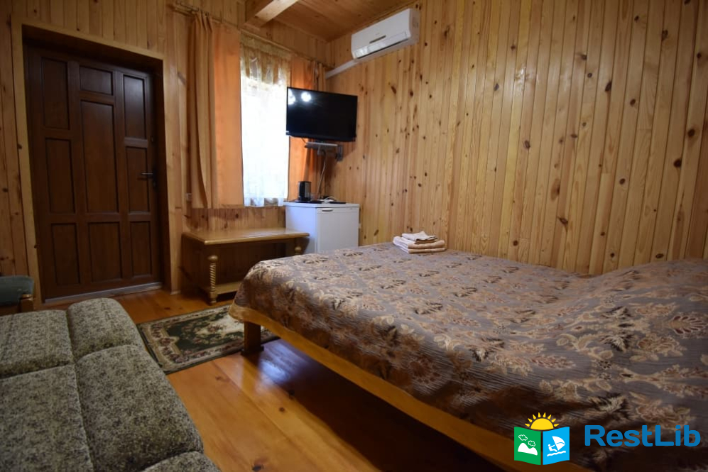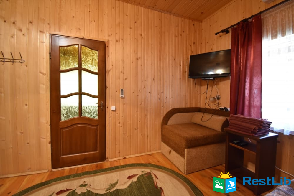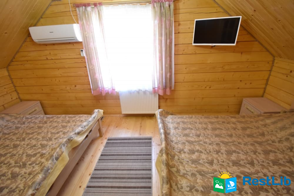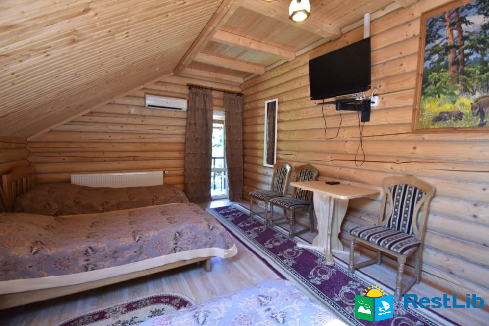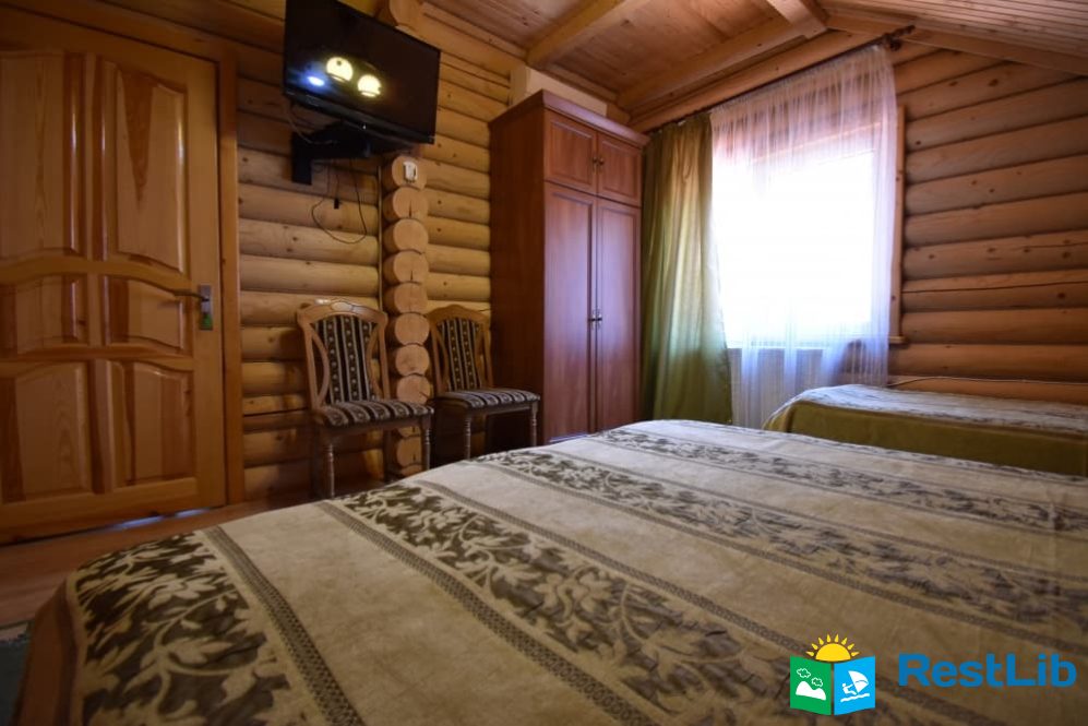 Для гостей пропонуємо 4 двоповерхові котеджі з брусу. Один задється повністю під одну компанію, інші по номерах. Кожен номер та котедж облаштований усім необхідним для комфортного відпочинку.