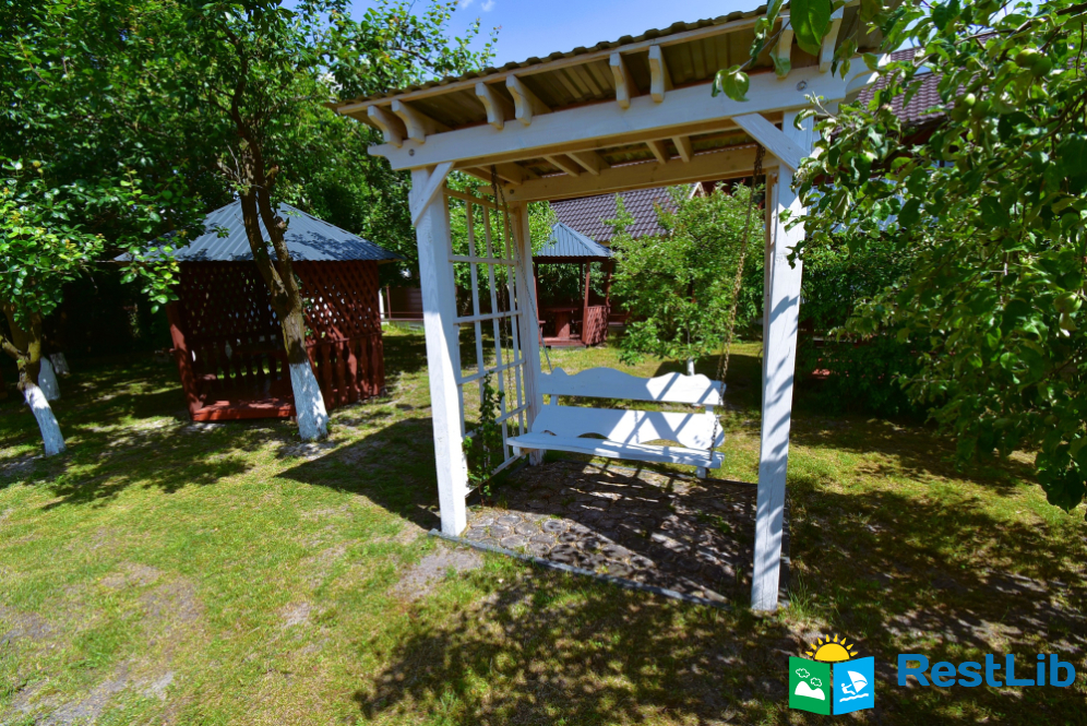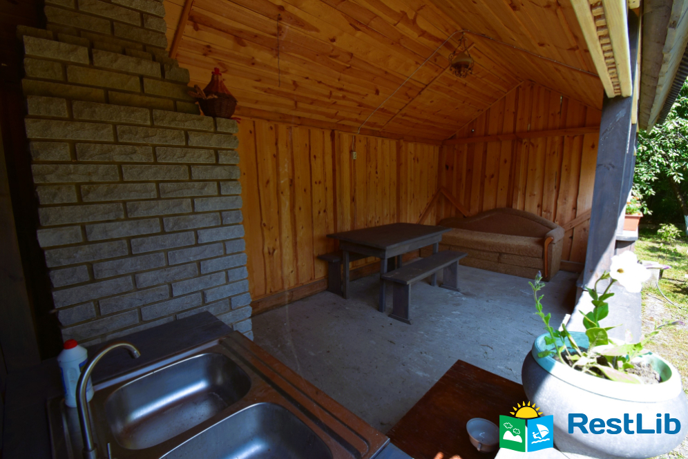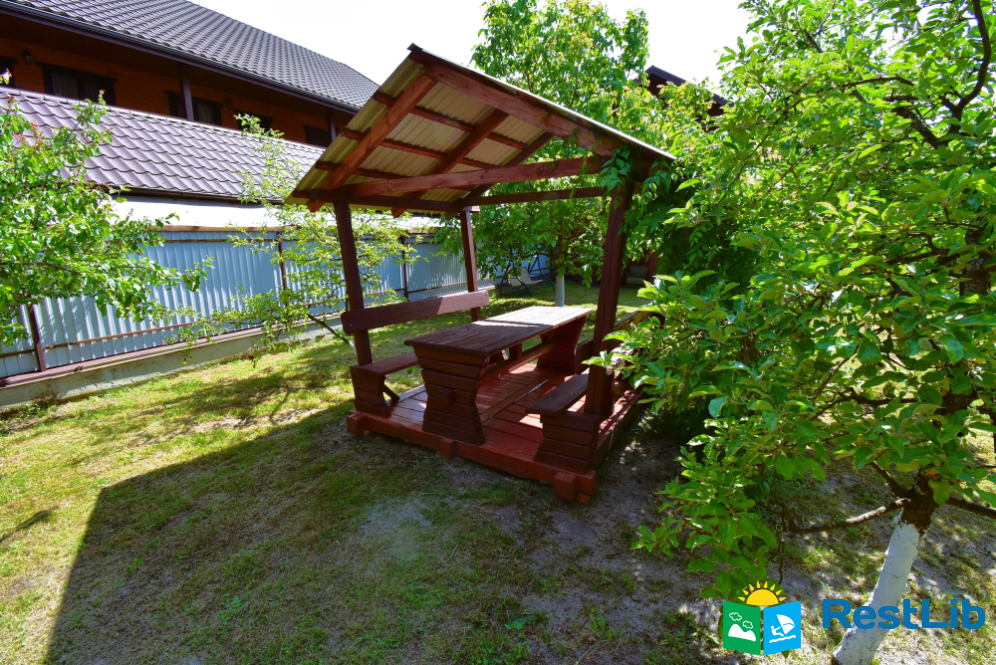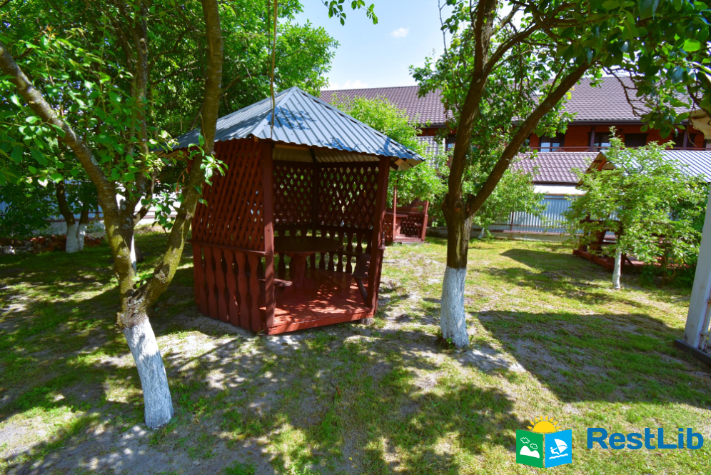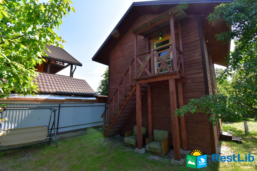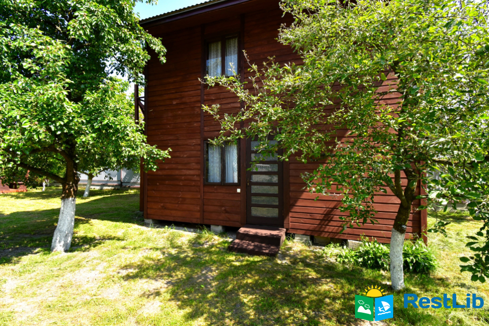 Велика загорожена озеленена територія, де знаходиться двоповерховий будинок. Будинок здається поверхами на 4 особи. На кожному поверсі є власна кухня, санвузол і дві двоспальні кімнати.