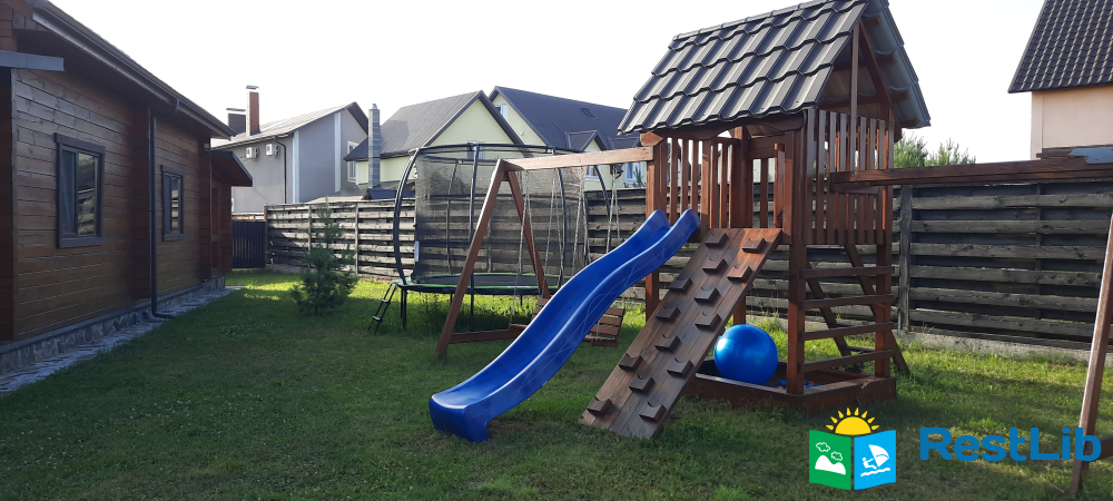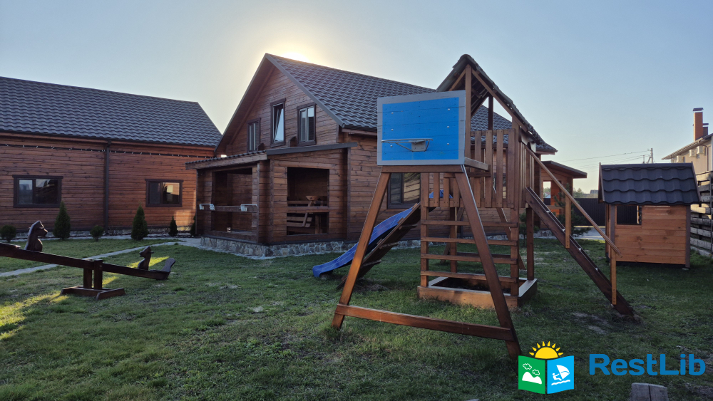 На території:  чотири альтанки, зони барбекю, дитячий майданчик, гойдалки, батут.