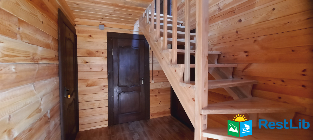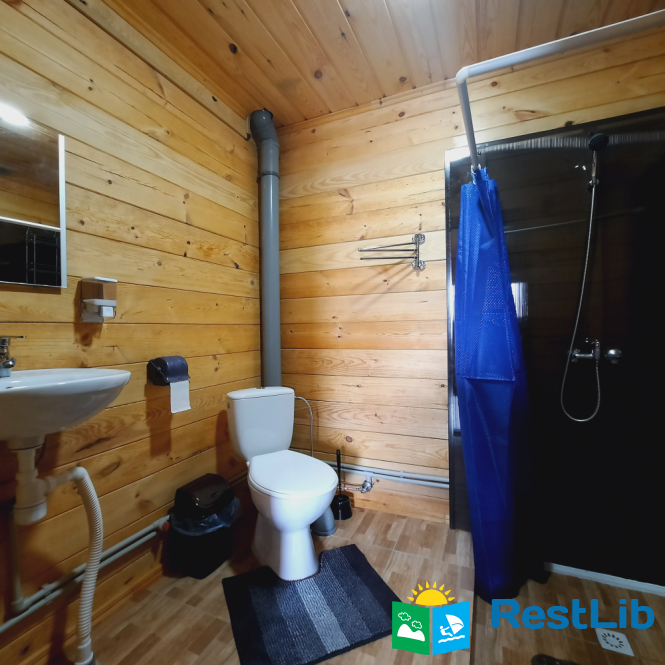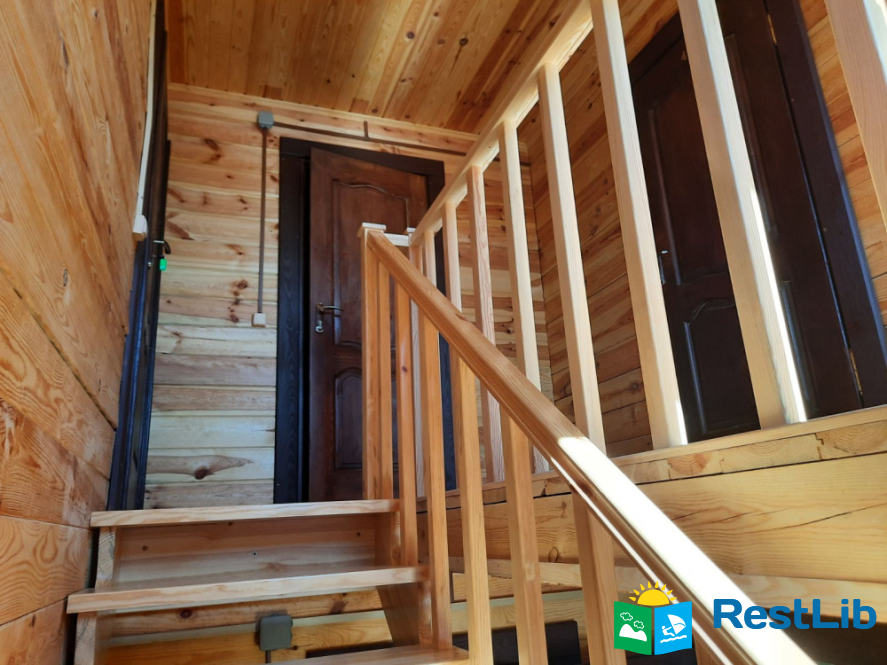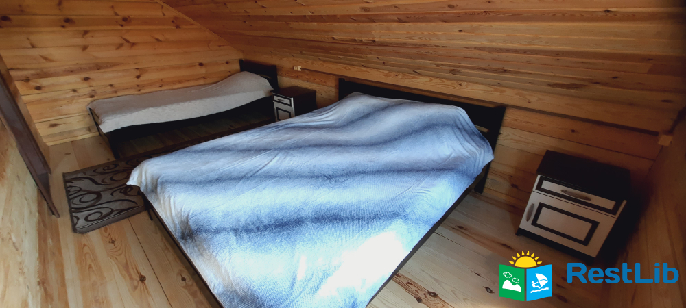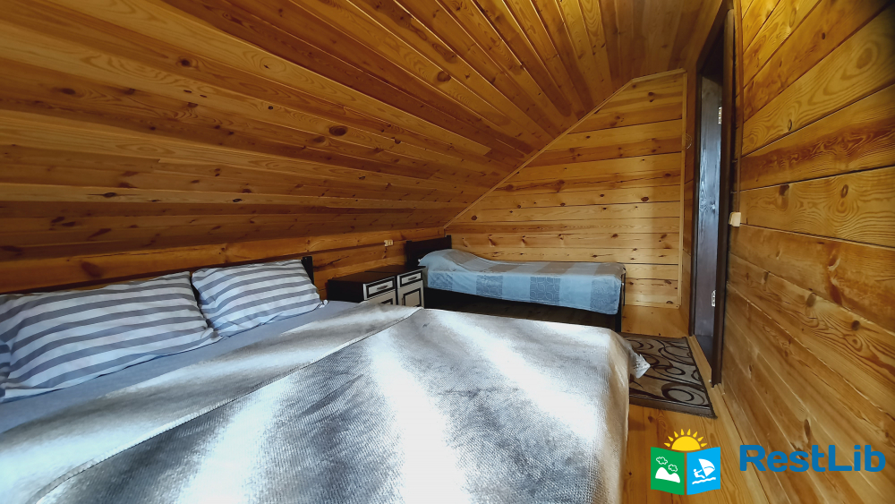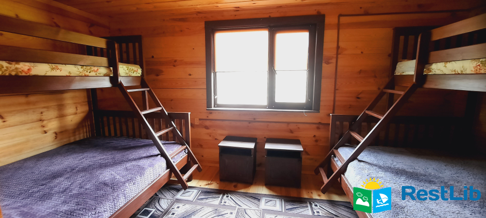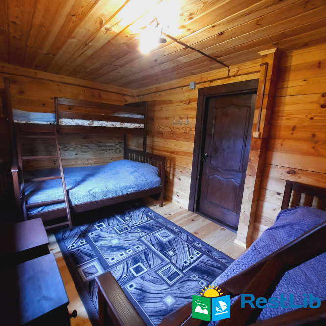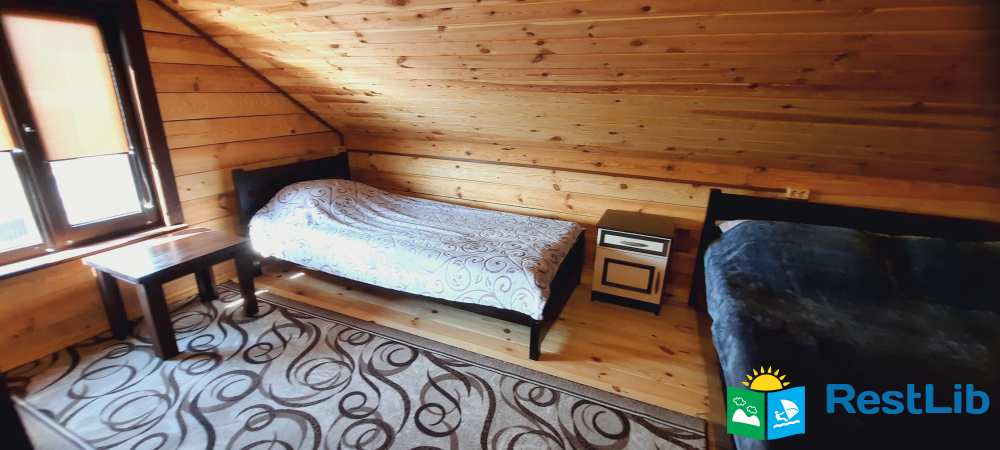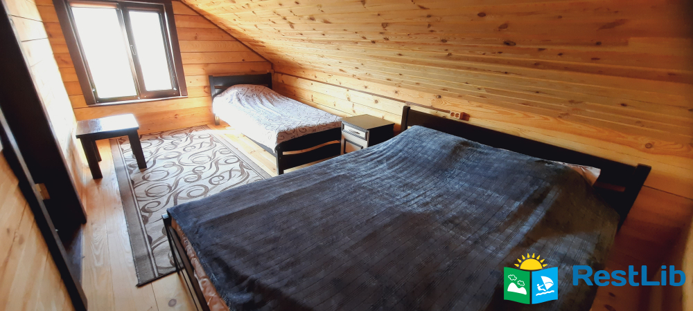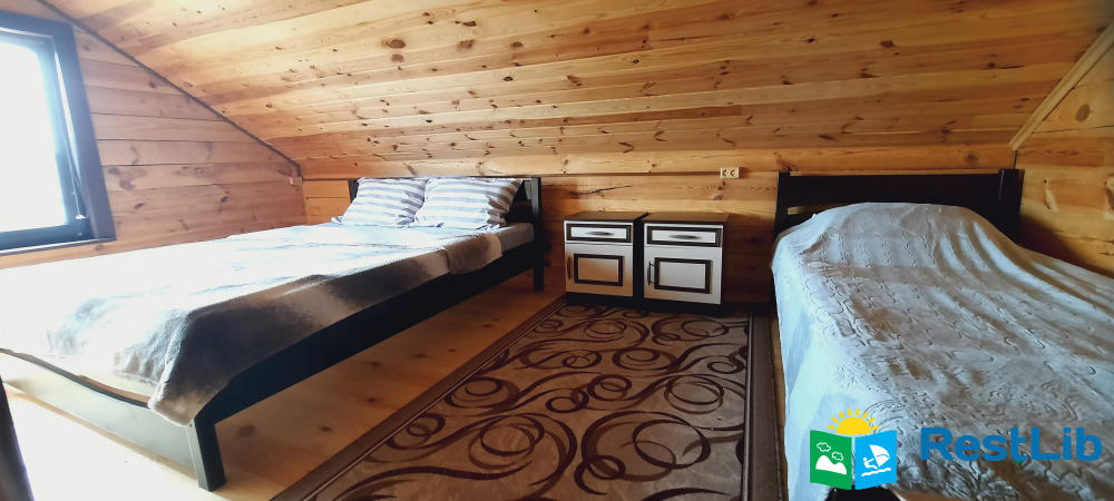На другому поверсі котеджу розташовані 2 тримісні номери, 1 спільний санвузол, на першому поверсі загальний,