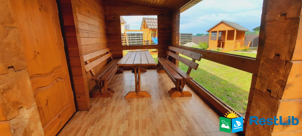 Веранда: стіл, лави
