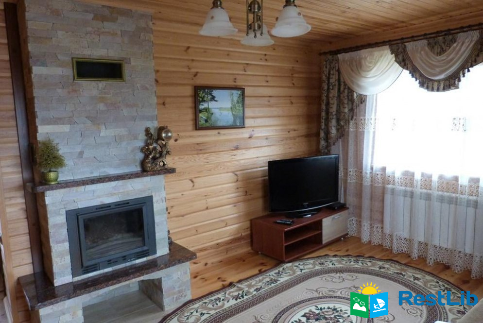 - вітальня з каміном, розкладним диваном та телевізором;