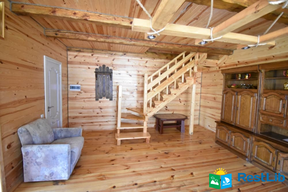 На першому поверсі: вітальня та санвузол (душ, туалет, умивальник, водонагрівач, фен).