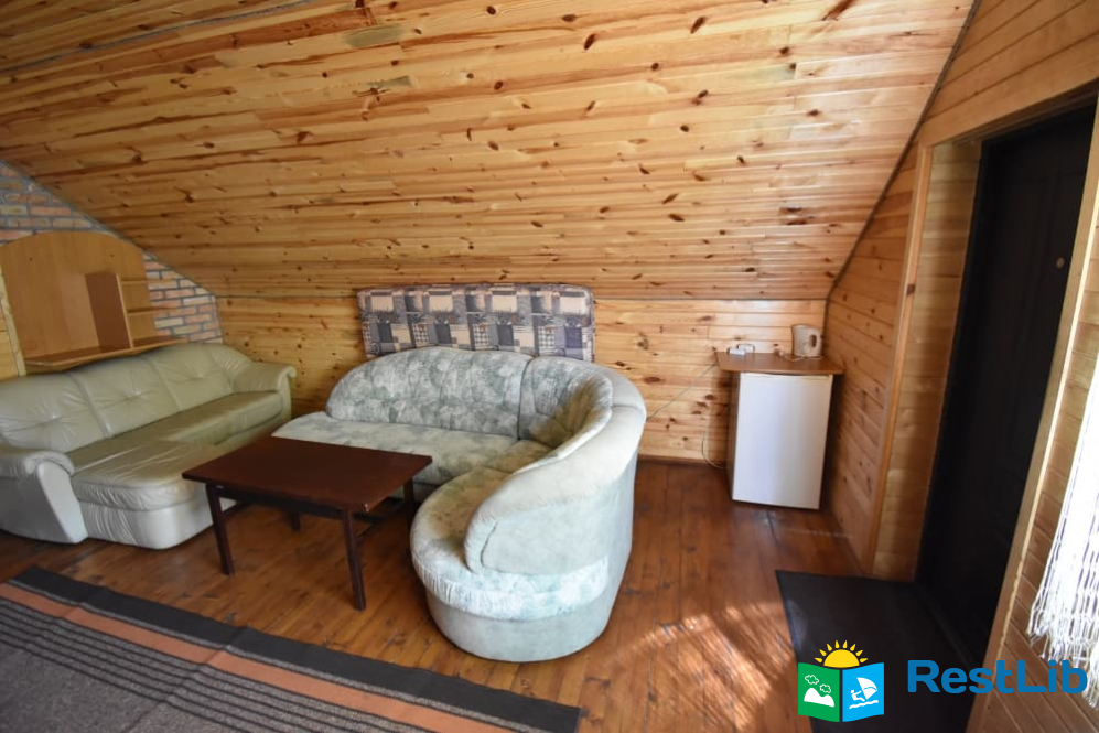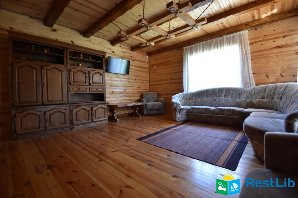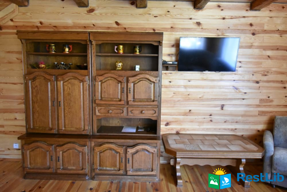 - просторий хол з великим розкладним диваном, м’які крісла, два журнальних столика, телевізор.