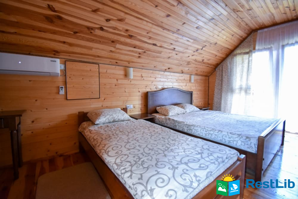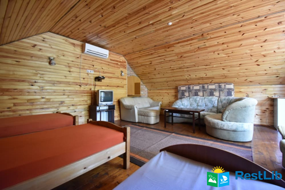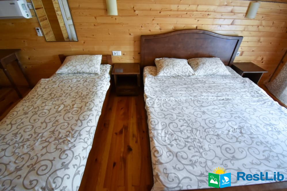 - тримісний номер (двоспальне + односпальне ліжка, шафа для одягу, приліжкові тумби,трюмо з пуфом, кондиціонер. Вихід з кімнати на балкон (суміжний з іншою кімнатою).