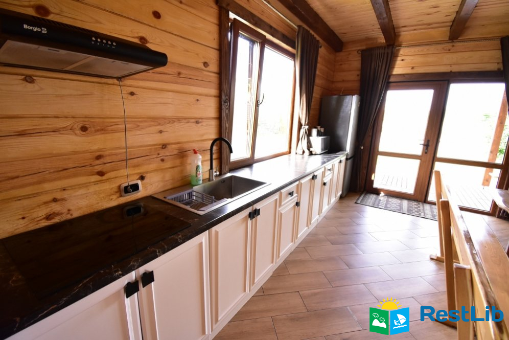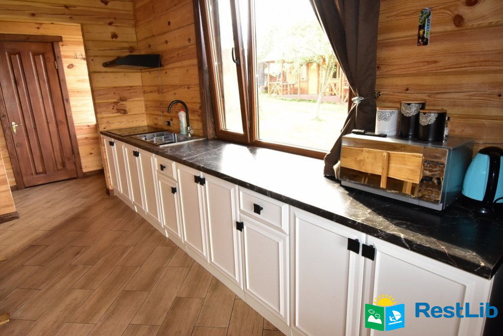 Загальна кухня, яка облаштована всім необхідним для приготування їжі, є змурована піч. Також загальний, душ та санвузол.