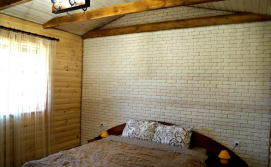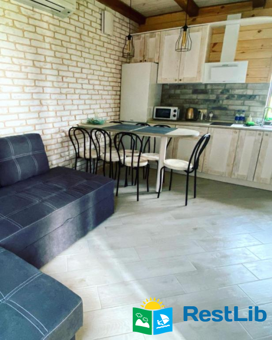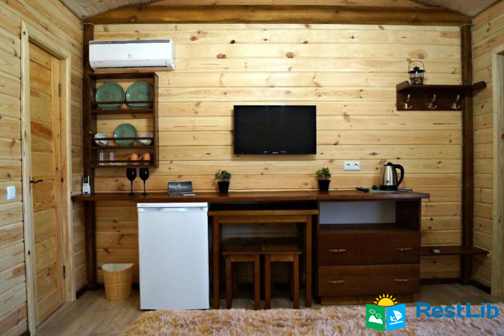 Двоповерхові будинки, які оснащені всім необхідним для довгого проживання. У будинках: зал-студія: камін, кухня, розкладний диван, зона для читання з міні-бібліотекою чи роботи за ноут-буком, душ. 2-й поверх: 2 окремі спальні кімнати з виходом на балкончик для проведення дозвілля, спальне місце для дітей, туалет, кондиціонер. На кухні є все необхідне приладдя: плита, мікрохвильова піч, холодильник, електрочайник, весь посуд. При заселенні міні-бар заповнюється одноразово: вода газована та не газована, кола, сік для дітей та косметичні засоби: (мило, шампунь, гель для душу, капці, зубна щітка).