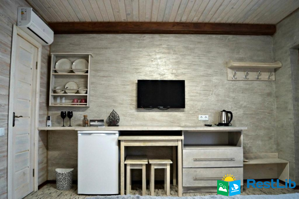 Умови проживання: у розпорядженні гостей 8 номерів та 2 комфортних сімейних будинки, які оснащені усім необхідним для довгого проживання.