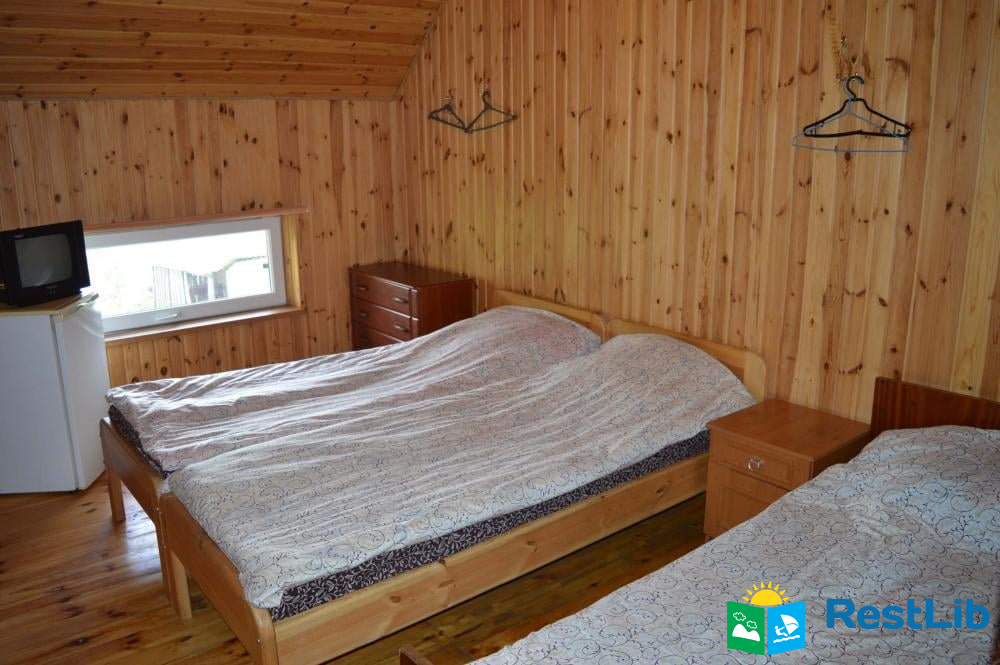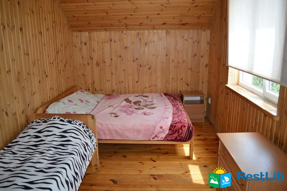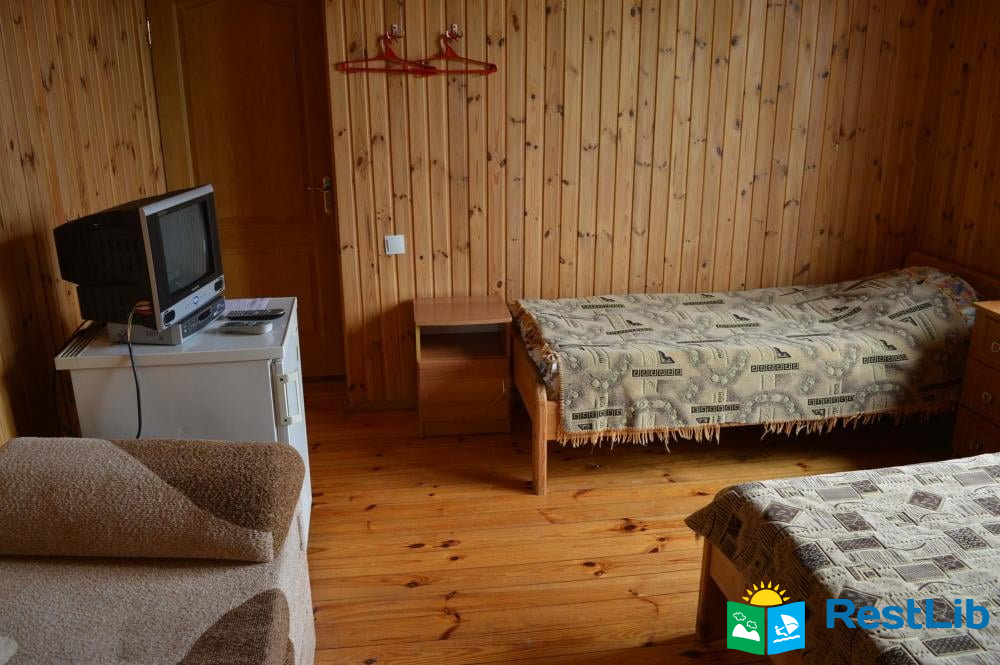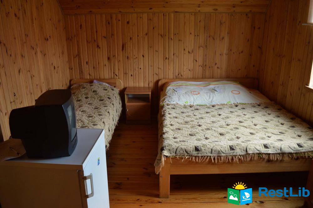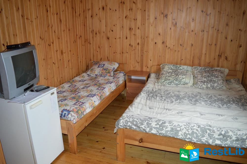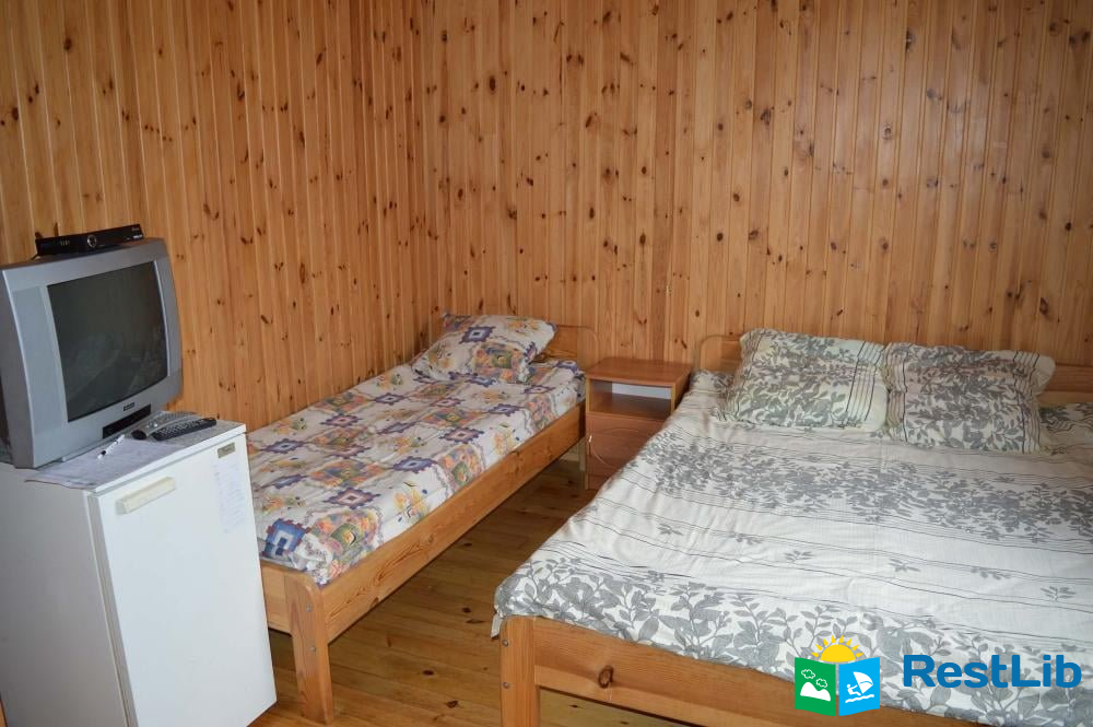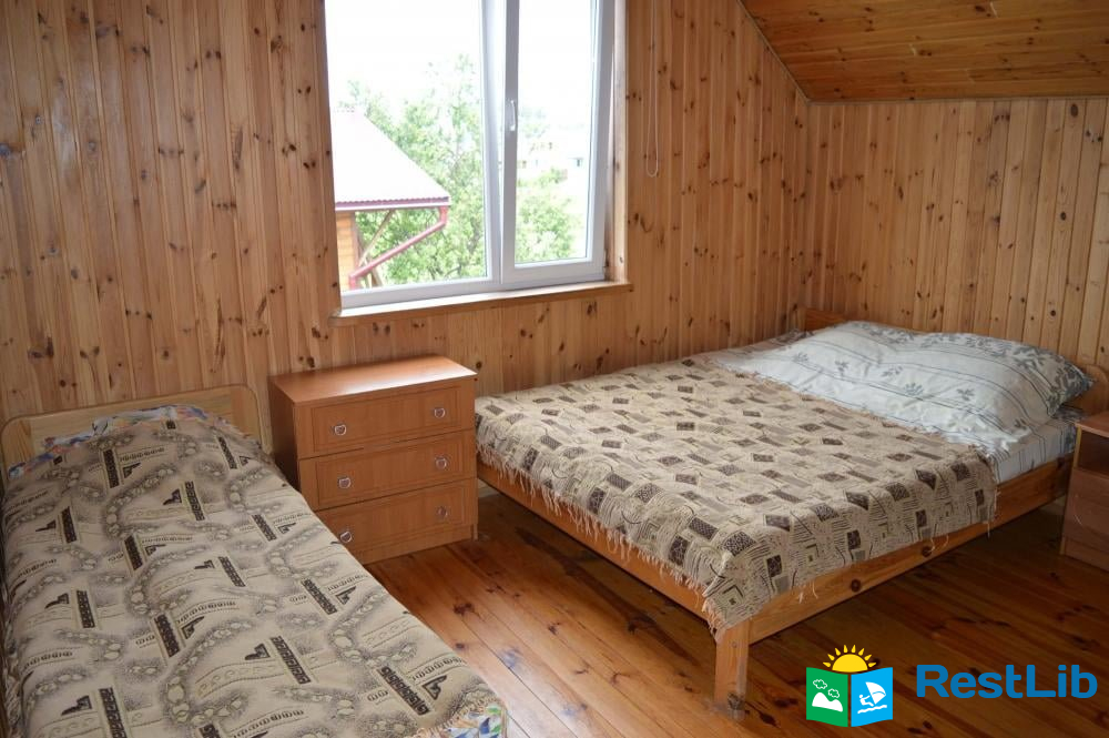 В номері: двоспальне та полуторне ліжко, або три полуторних, телевізор, холодильник, тумбочки, комод. Санвузол на поверсі, кухня загальна на будинок.