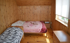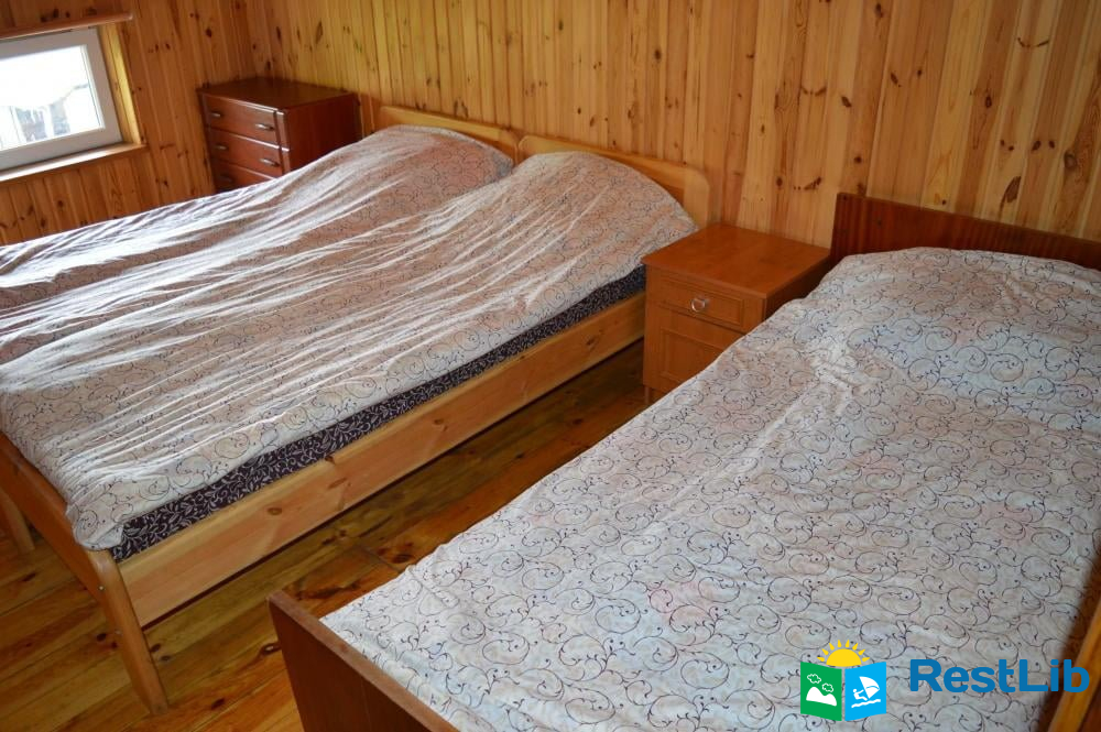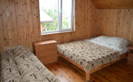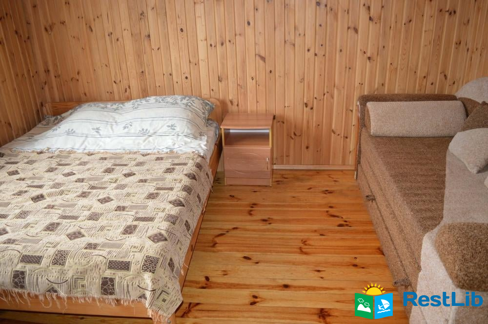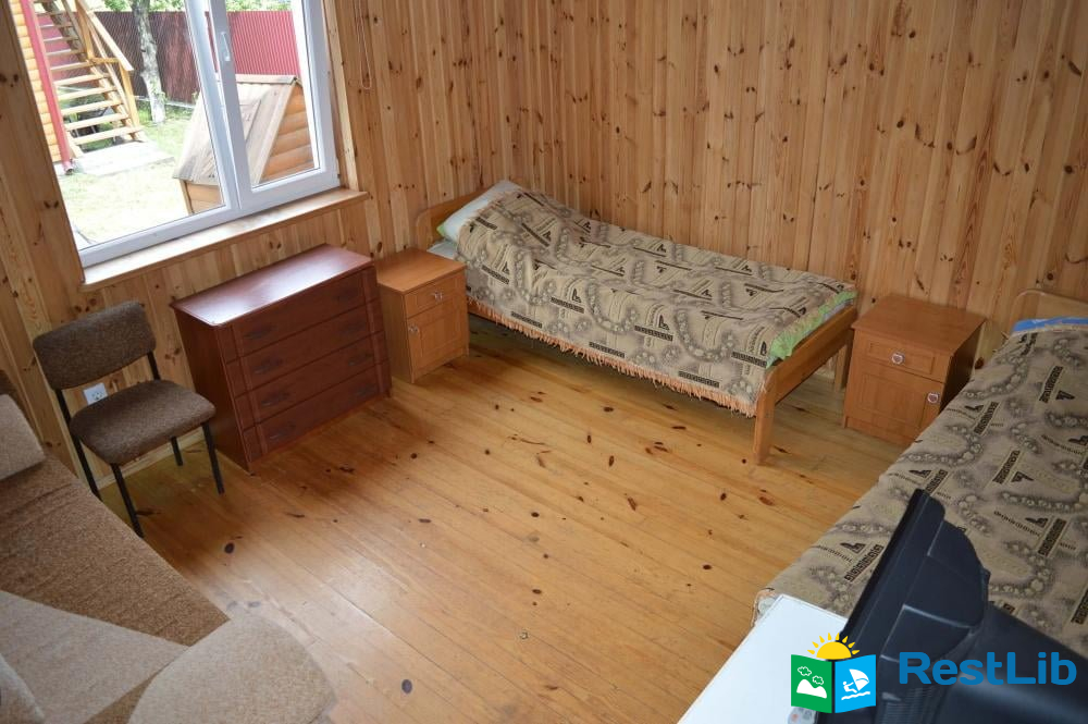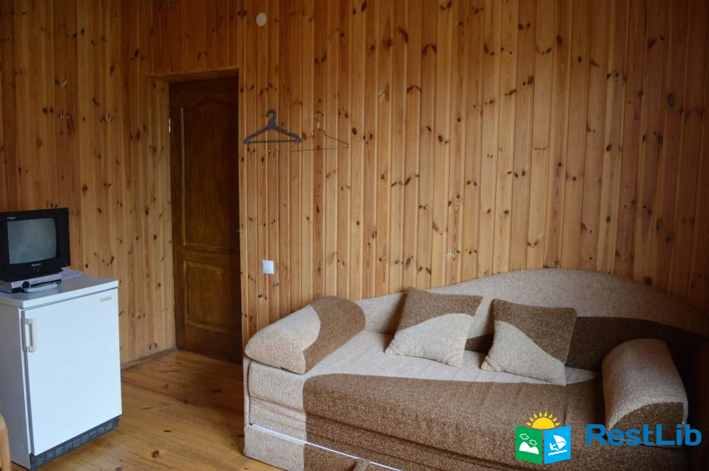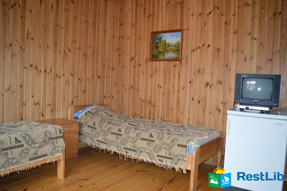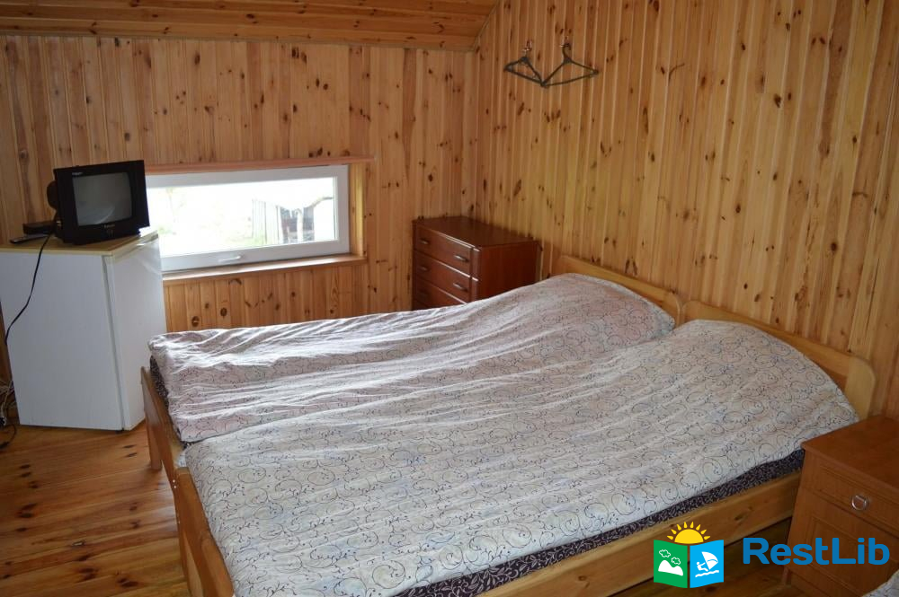 В номері: двоспальне та полуторне ліжко, або три полуторних, телевізор, холодильник, тумбочки, комод. Санвузол на поверсі, кухня загальна на будинок.