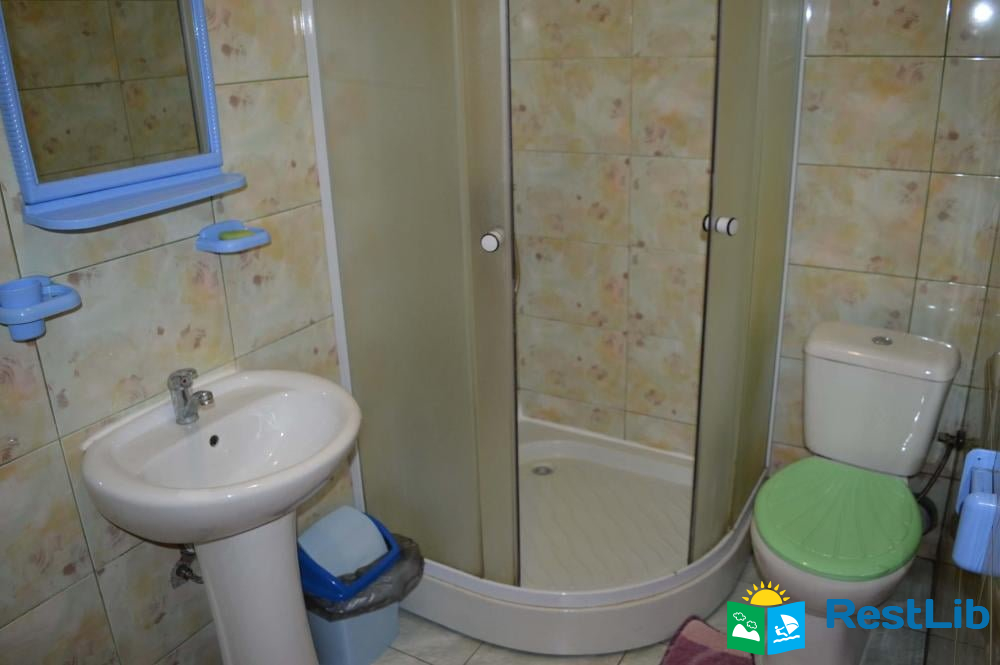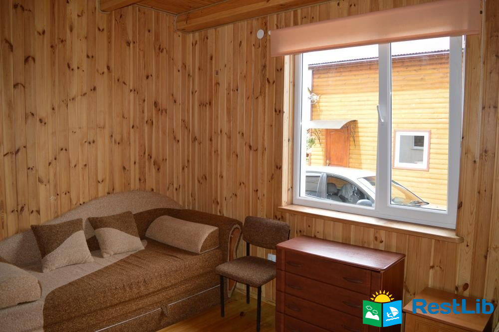 В номері: двоспальне та полуторне ліжко, великий розкладний диван, холодильник, телевізор, комод, тумбочки. Санвузол на поверсі, кухня загальна на будинок.