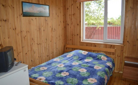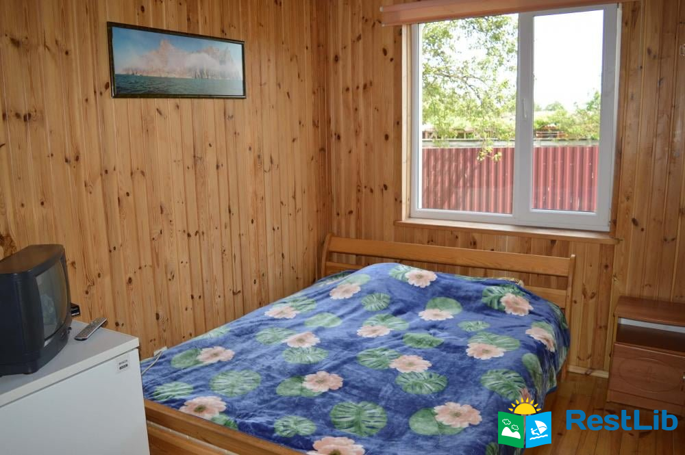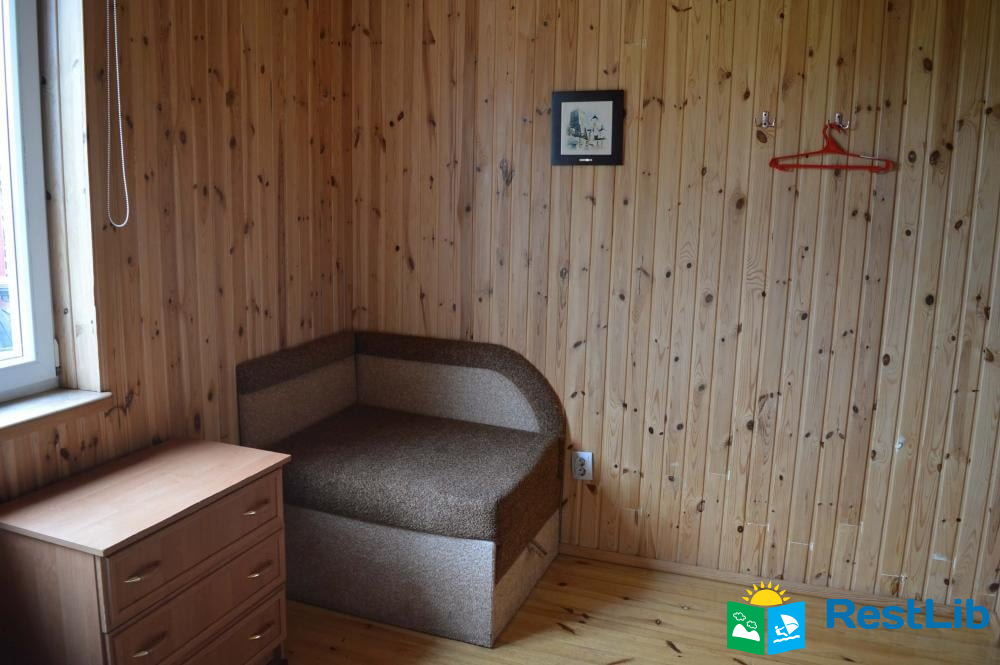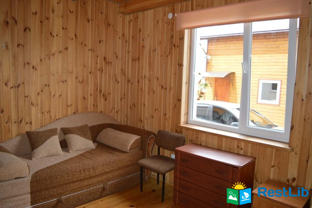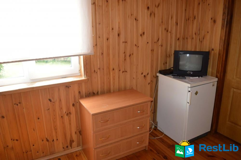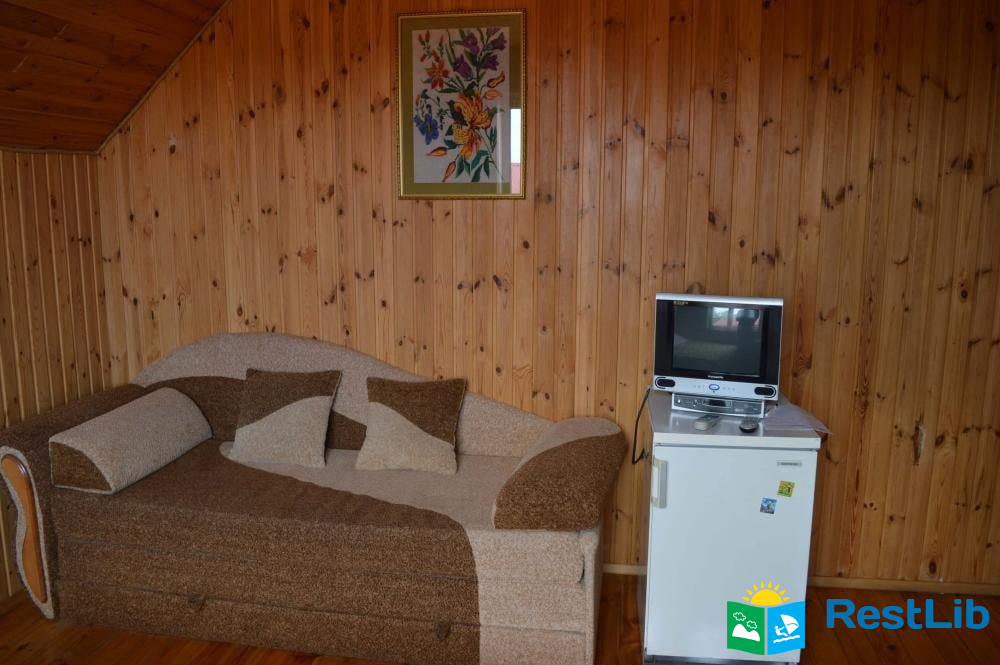 В номері: двоспальне + полуторне ліжко та розкладне крісло-кутик, холодильник, телевізор, комод, тумбочки. Санвузол на поверсі, кухня загальна на будинок.
