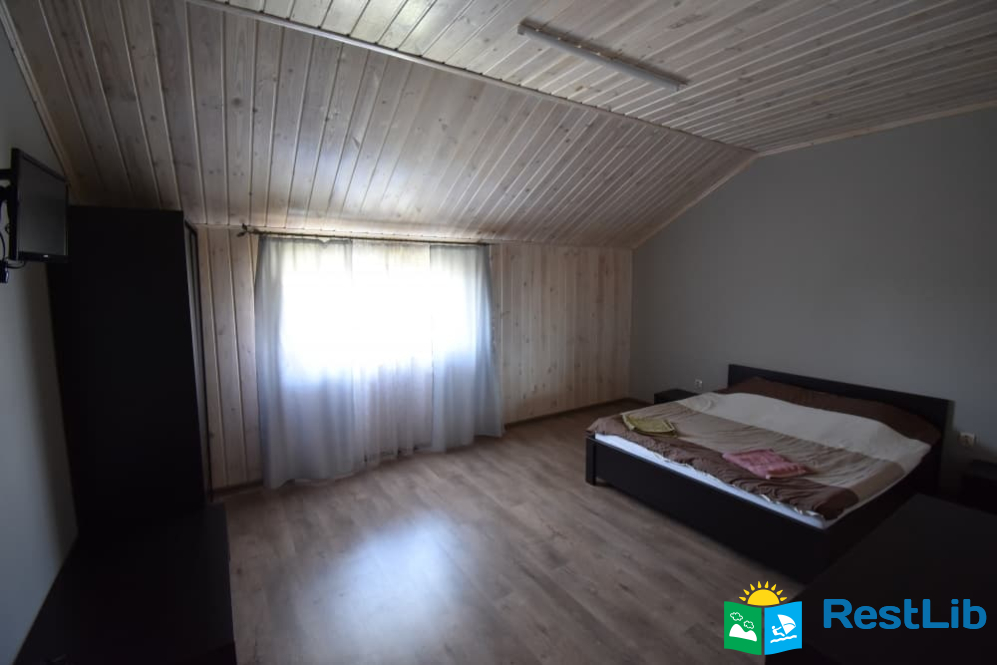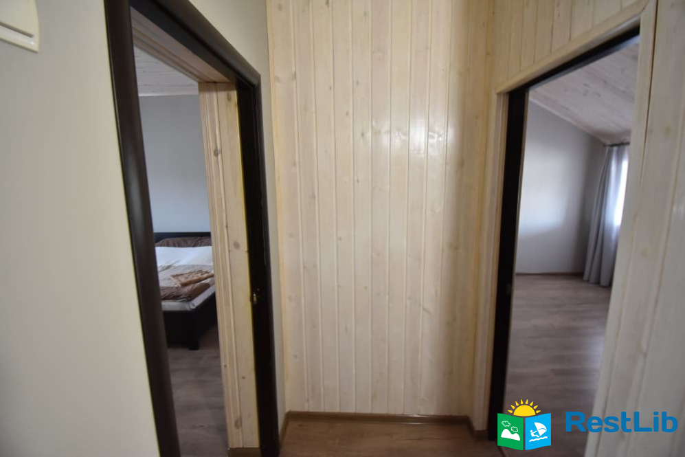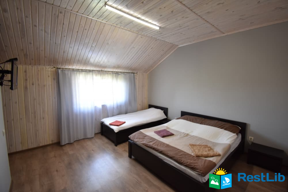 Другий поверх: дві спальні кімнати, одна тримісна з двоспальним + односпальне ліжко, телевізор, санвузол (душ, туалет, умивальник). Двомісна кімната з двоспальним ліжком, є балкон.