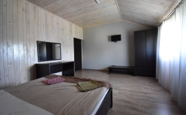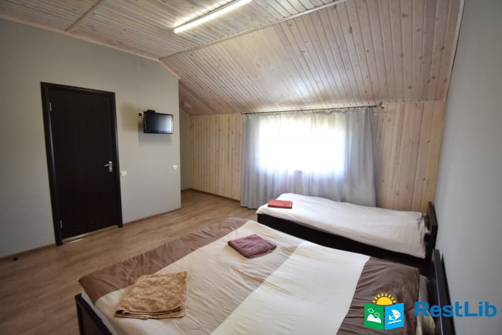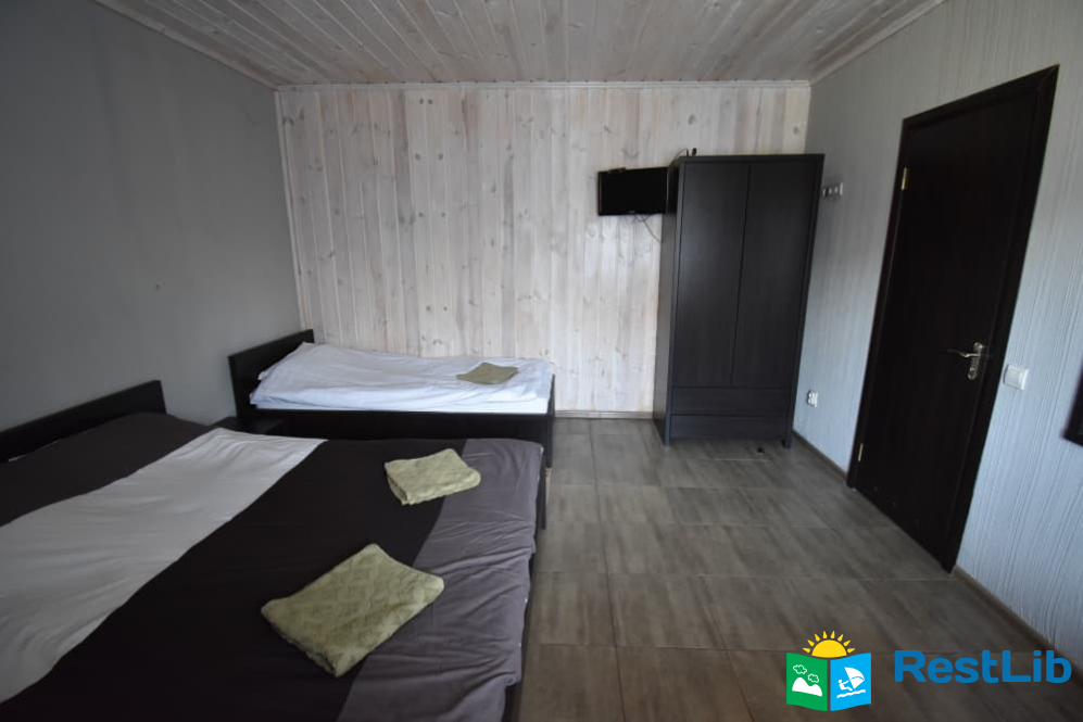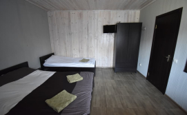 - Номер №2 : двоспальне + односпальне ліжко, санвузол (душ, туалет, умивальник), обідній стіл, телевізор, холодильник, шафа, Окремий вхід з вулиці (на першому поверсі).