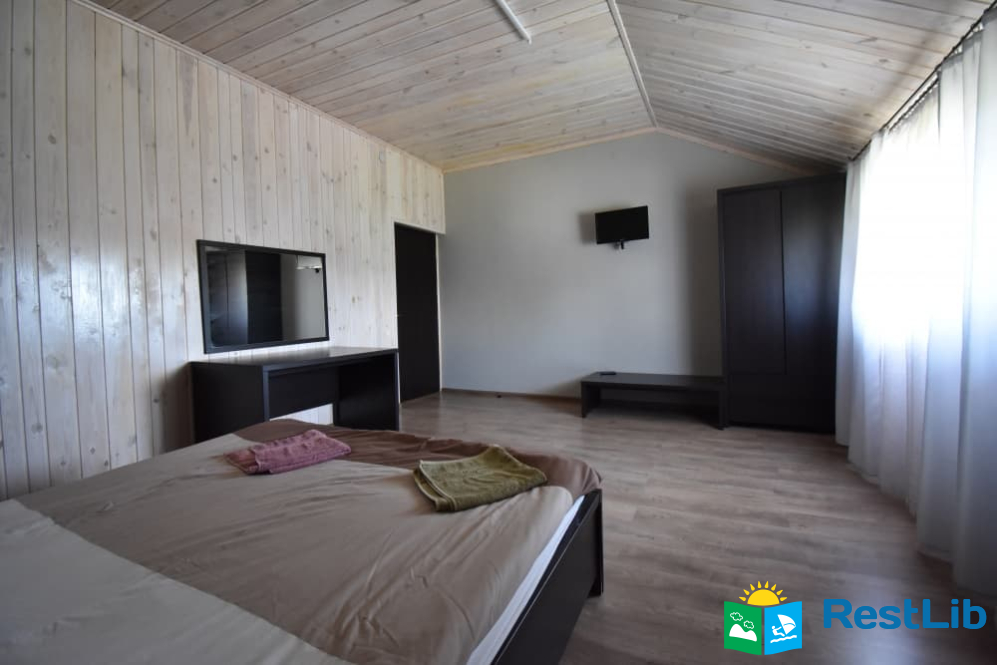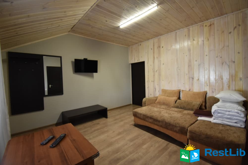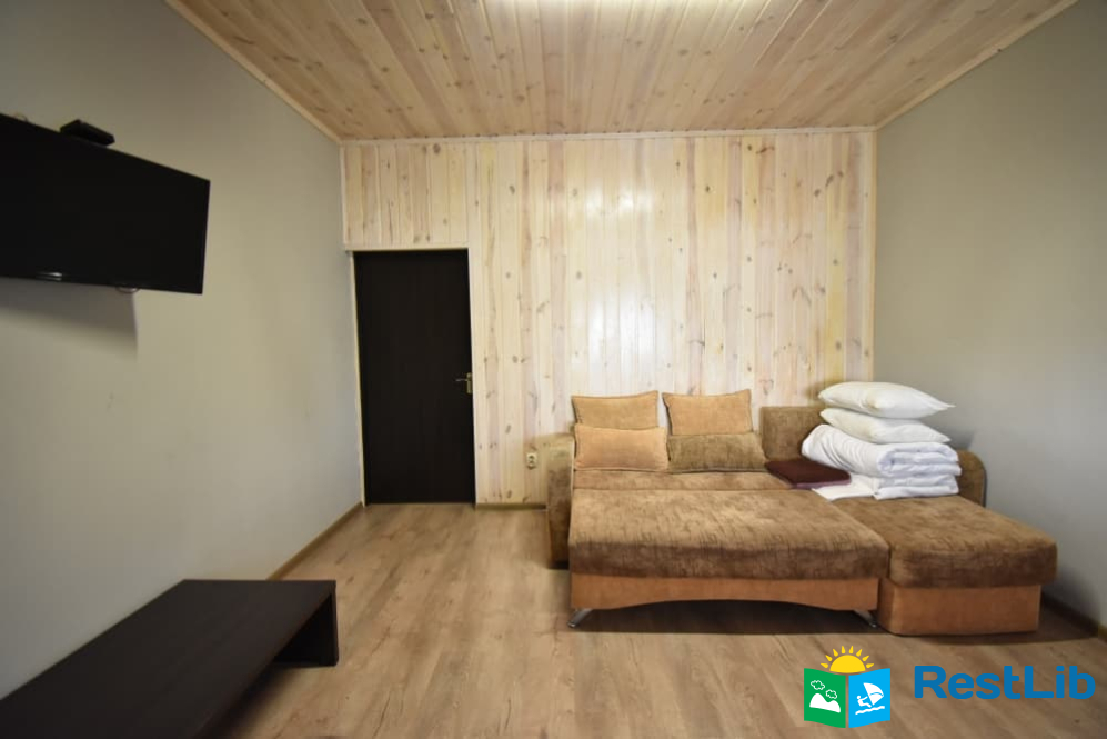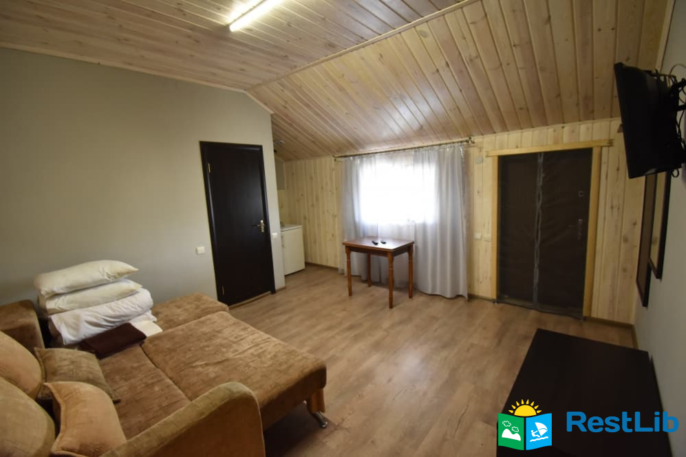 - Номер №1 : Дворівневий апартамент, на окремій території (половина будинку). Перший поверх: вітальня з розкладним диваном, обідній стіл, посуд, телевізор, санвузол (душ, туалет, умивальник). Другий поверх: дві спальні кімнати, одна тримісна з двоспальним + односпальне ліжко, телевізор, санвузол (душ, туалет, умивальник). Двомісна кімната з двоспальним ліжком, є балкон.
