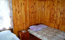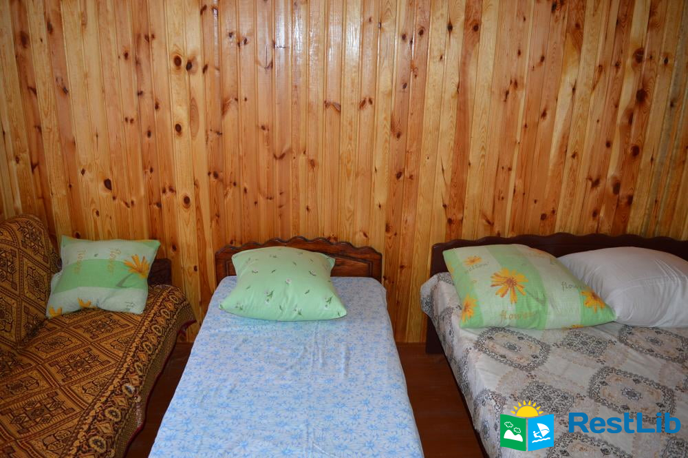 Перший будинок на 7 осіб, здається повністю. Своя кухня, санвузол, душ, туалет, телевізор, тримісна та чотирімісна кімнати.