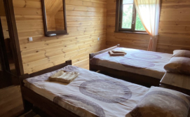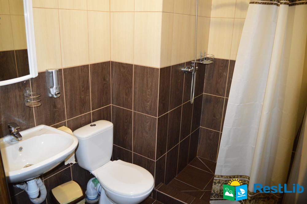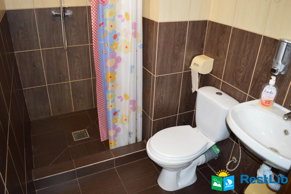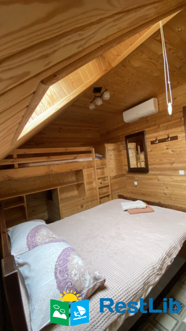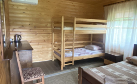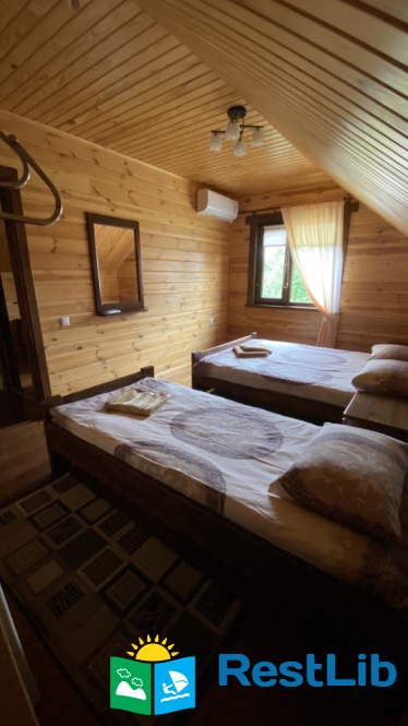 Пропонуємо будинок на 5 номерів з кондиціонерами: 2 сімейних чотиримісних, 2 тримісних та один двомісний. Одна велика кухня (кохонний гарнітур, холодильник, плита, мікрохвильова піч, витяжка, весь посуд) для всього будинку. Три санвузла : один для двомісної кімнати зі зручностями, один на два номери тримісні та один для двох сімейних чотиримісних.