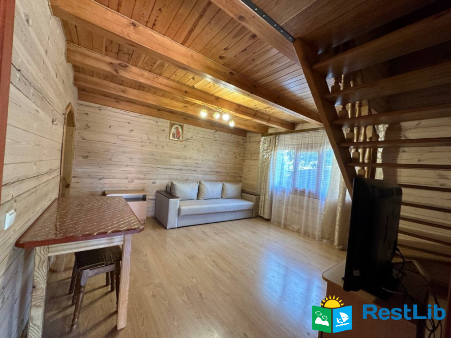 Запрошуємо на спокійний та затишний відпочинок у нашому дерев'яному котеджі, що знаходиться поряд з озером.