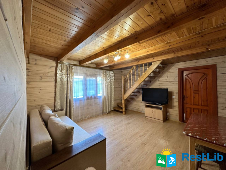В котеджі є вітальня, кухня, ванна кімната, спальні кімнати.