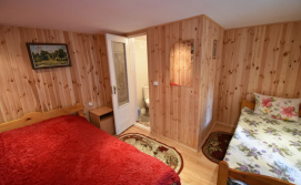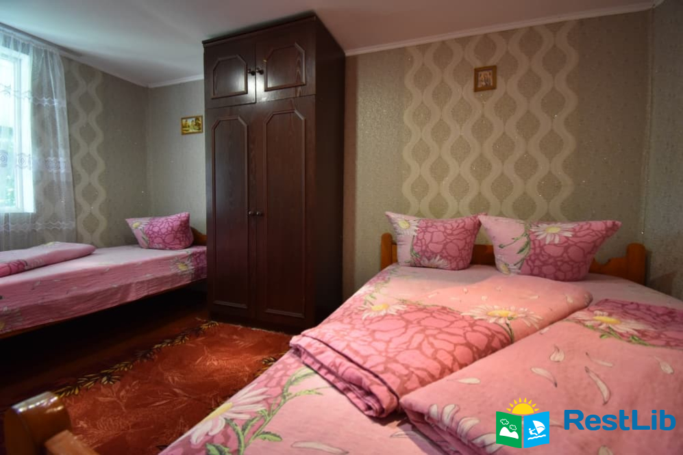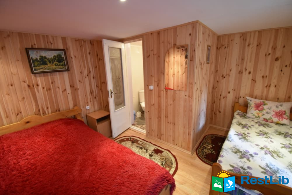 - 1 тримісний номер. У номері: двоспальне + односпальне ліжка, комод, тумба, телевізор. У номері є санвузол (душ, туалет). Кухня спільна на 3 кімнати.