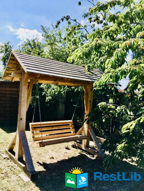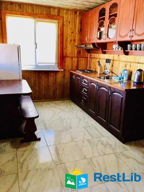 Будинок розрахований на 8-10 чоловік. На першому поверсі 2 кімнати, велика кухня і санвузол з душовою кабінкою. На другому поверсі - 2 спальні. В будинку є необхідний посуд і постіль, а також предмети побутової техніки: електроплита, електрочайник, мікрохвильова пічь, холодильник, кондиціонер, телевізори, WI-FI. На території є альтанка, мангал, качеля.