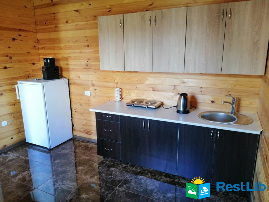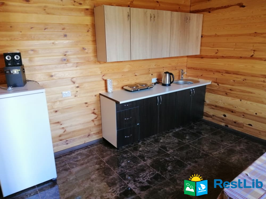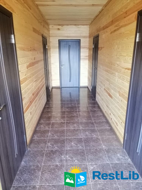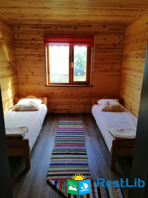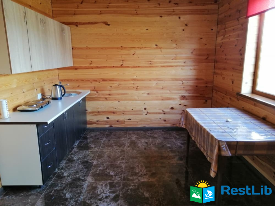 В першому будинку (з білої цегли) три двомісні кімнати, з зручними двоспальними ліжками. Велика кухня, санвузол (душ, туалет, умивальник)