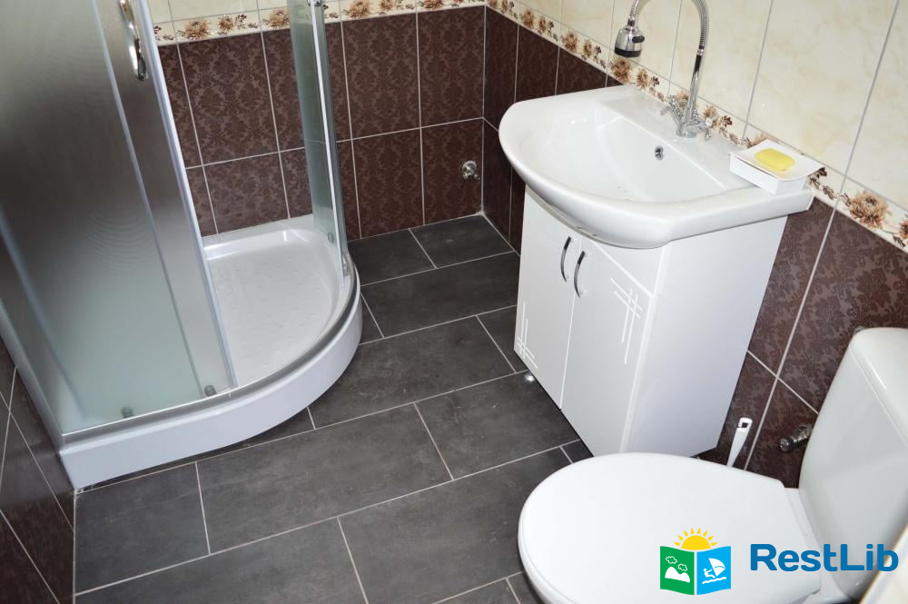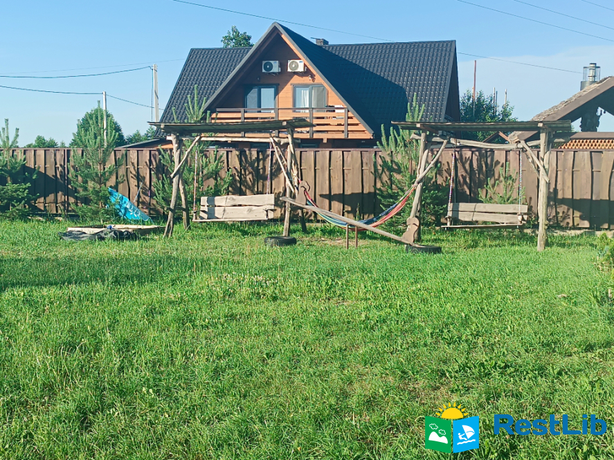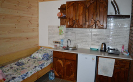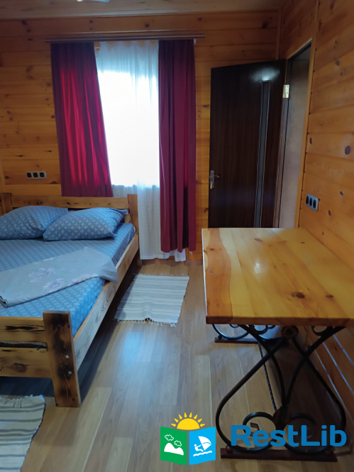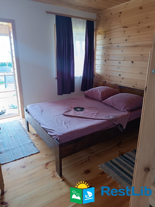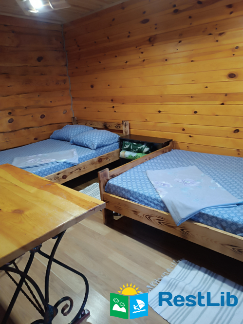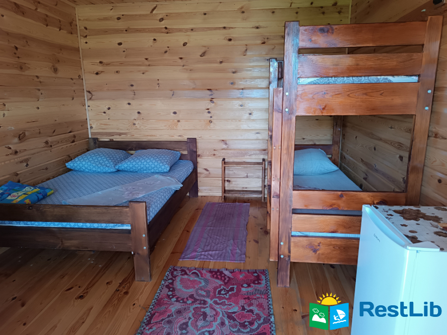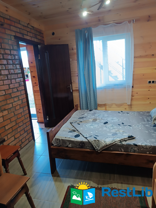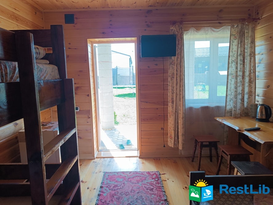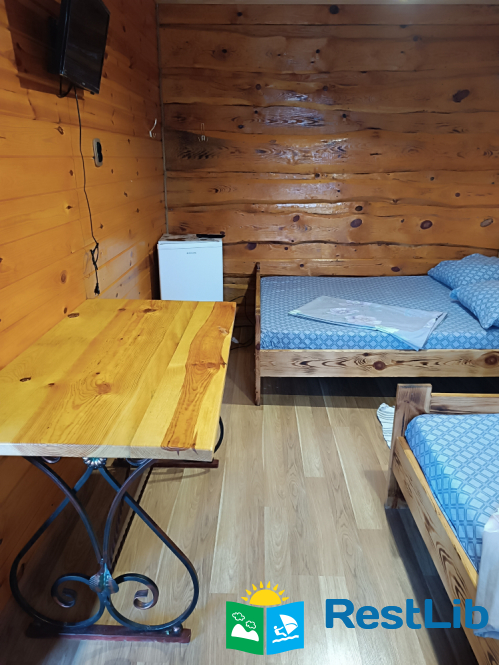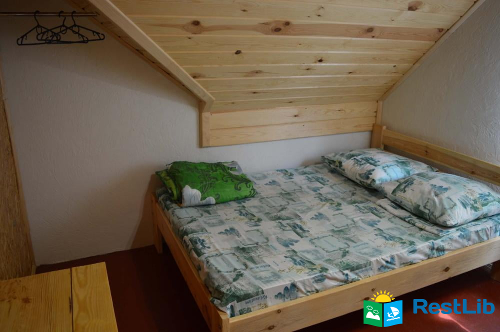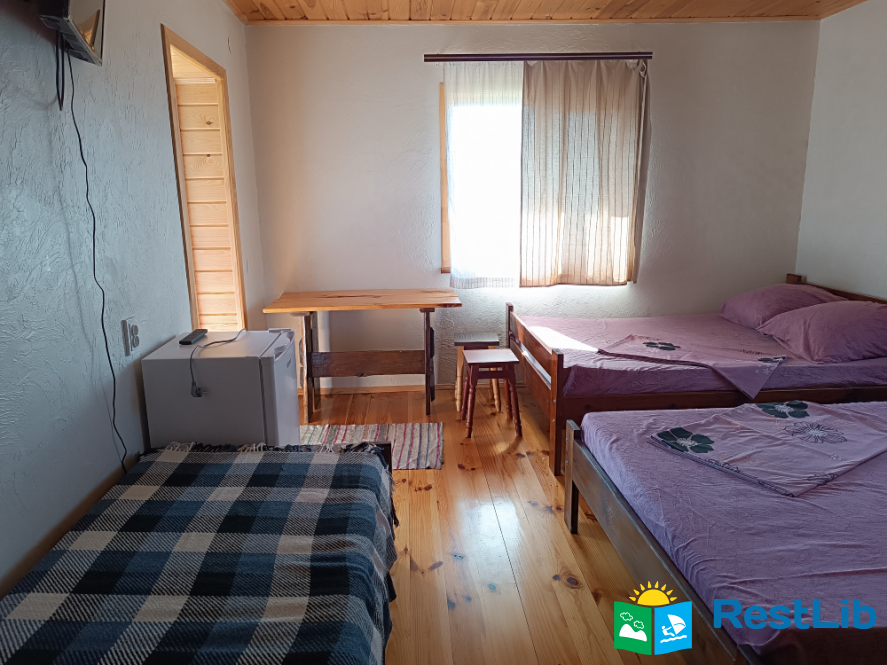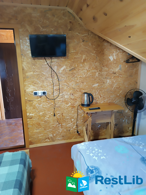 В номері: двоспальне + односпальне ліжка, столик, електрочайник, чашки, вішак для одягу, телевізор з Т2. Санвузол на поверсі, кухня в мангалі на території.