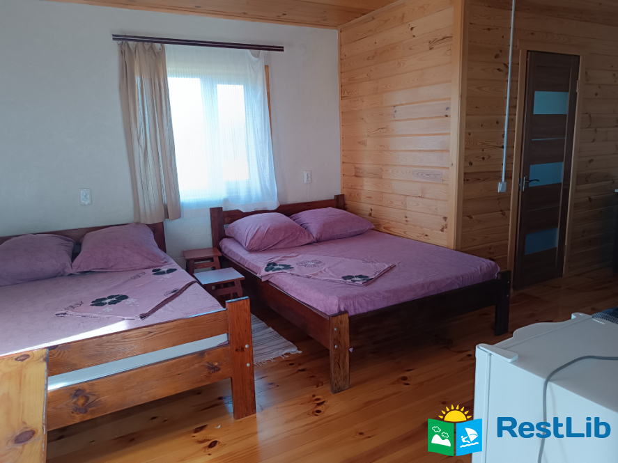 В номері: два двоспальних ліжка, телевізор з Т2, холодильник, електрочайник, чашки. На вибір є два номера з власними санвузлами.