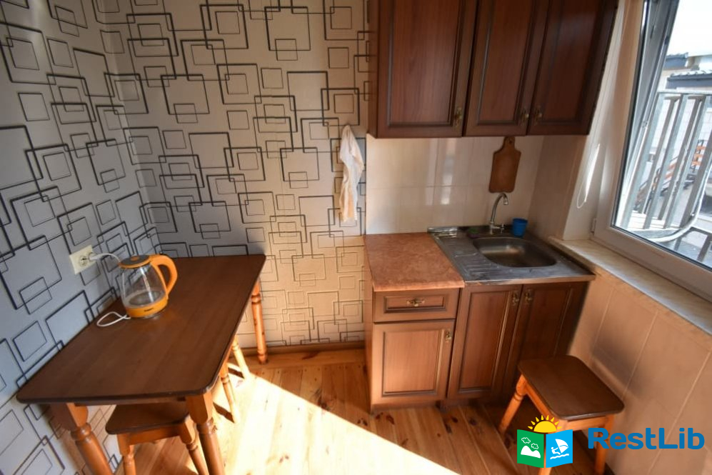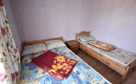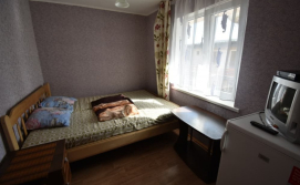 Окремий апартамент з кухнею та санвузлом. У номері: двоспальне + односпальне ліжка, шафа для одягу, стілець, холодильник, телевізор. Можна проживати від 2 до 3 осіб. Якщо поселення 2-х осіб - 600 грн.