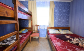 Окремий апартамент з кухнею та санвузлом. У номері: двоспальне + двоповерхове ліжка, шафа для одягу, стілець, холодильник, телевізор.