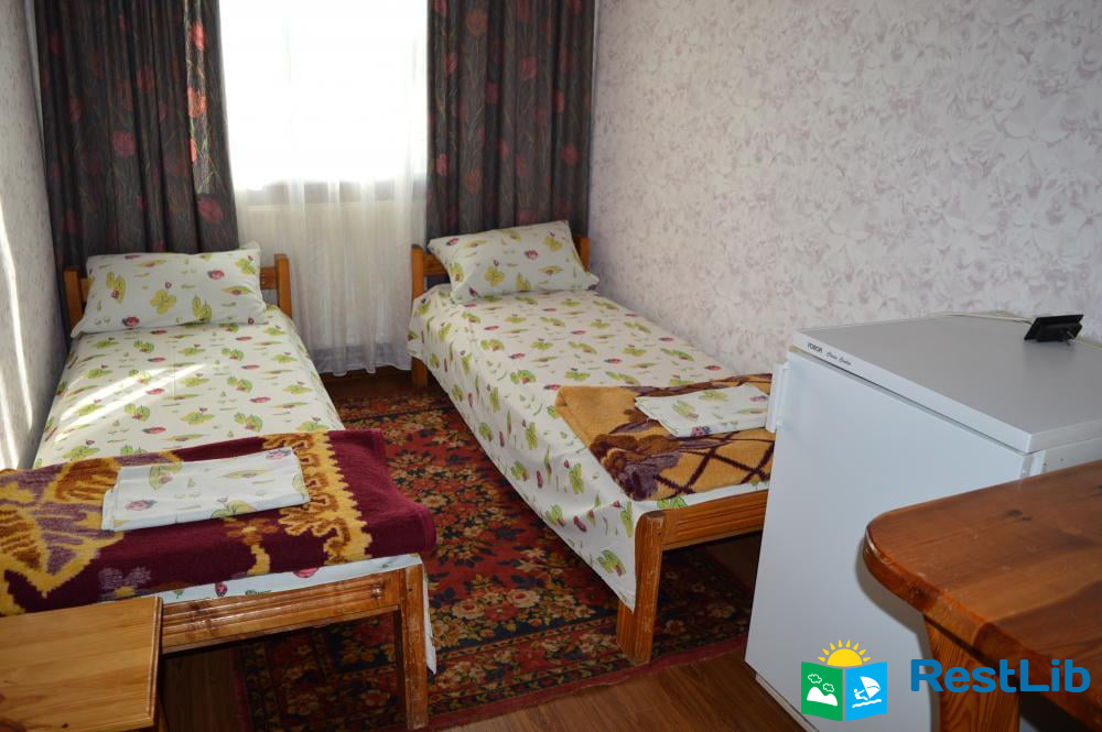 В кожному номері зручні двоспальні та односпальні ліжка, холодильник, кухонний стіл.