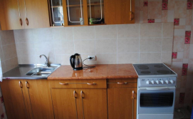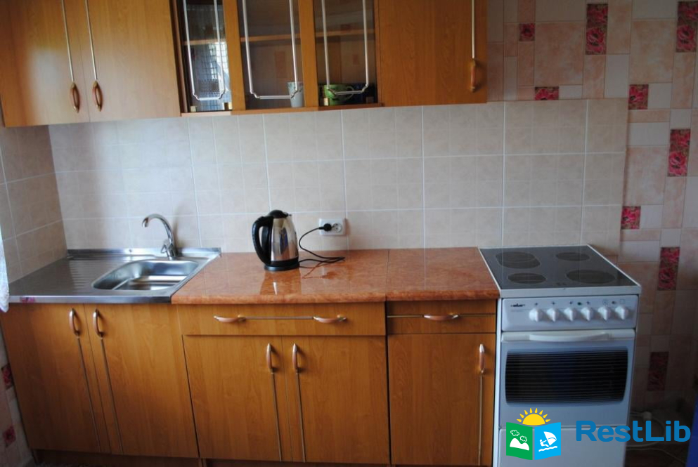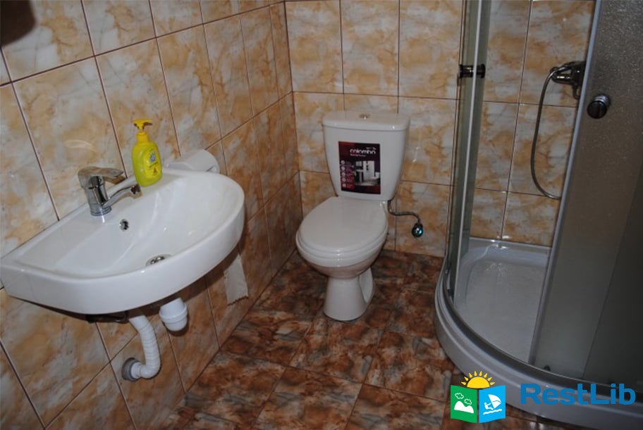 На кожному поверсі: три трьохмісні номери, спільна кухня (електроплита, духовка, посуд, електрочайник, холодильник, мийка) та спільний санвузол (душ, туалет і умивальник).