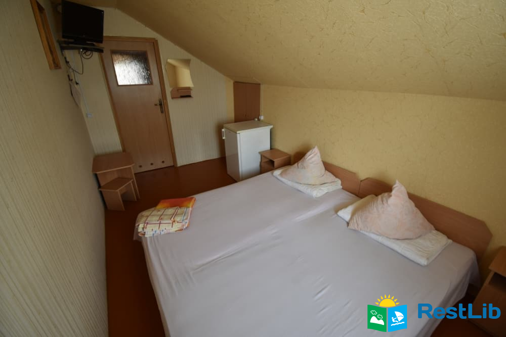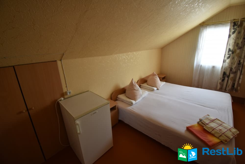 Цілий другий поверх будинку №1. На поверсі: 4 двомісних номери (2 з кондиціонерами, 2 без). Хол з телевізором. Санвузол (окремий туалет на другому поверсі. Душ, туалет, умивальник на першому поверсі). Кухня спільна на території