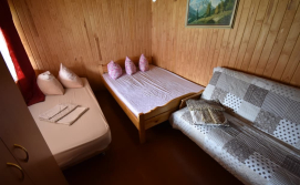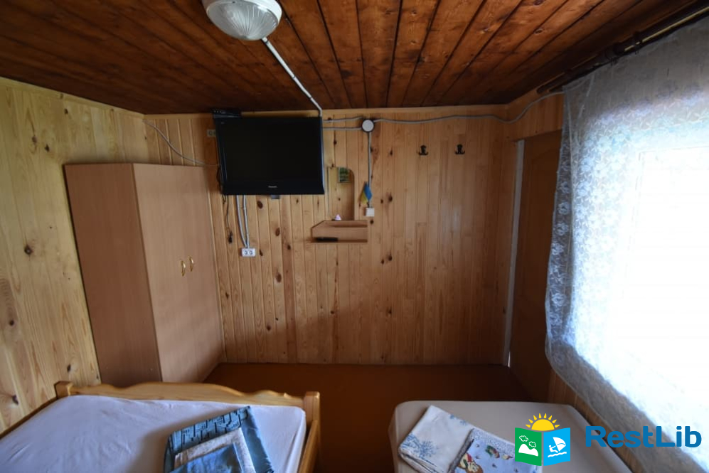 Загальна кількість номерів : 2 Перший поверх будинку 2. В номері: двоспальне ліжко+ односпальне, телевізор, шафа, постільна білизна. Біля входу тераса з столом та лавками Санвузол (душ, туалет, умивальник) -загальний на 3 кімнати з окремим входом. Кухня - загальна на 3 кімнати.