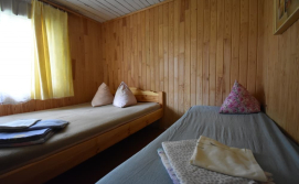 • Другий поверх: може здаватися як окремо (апартамент на 8 осіб), так і покімнатно. Два двомісних номери з кондиціонерами та 2 без . Кухня літня на території з усим необхідним, санвузол (душ, туалет, умивальник) на поверсі.