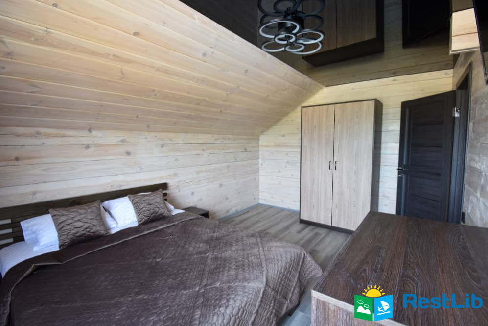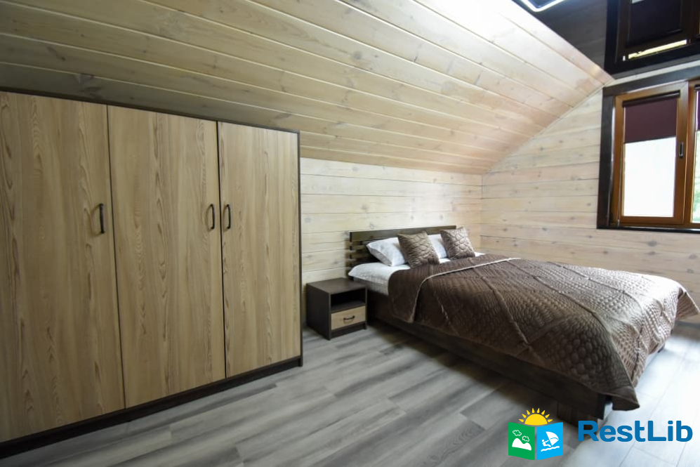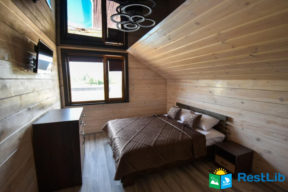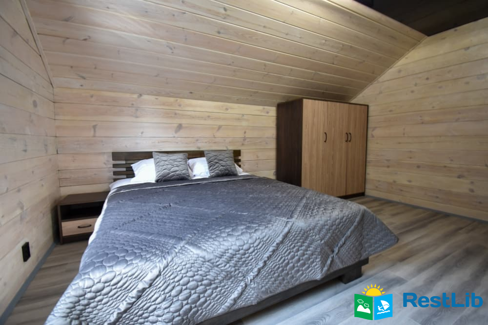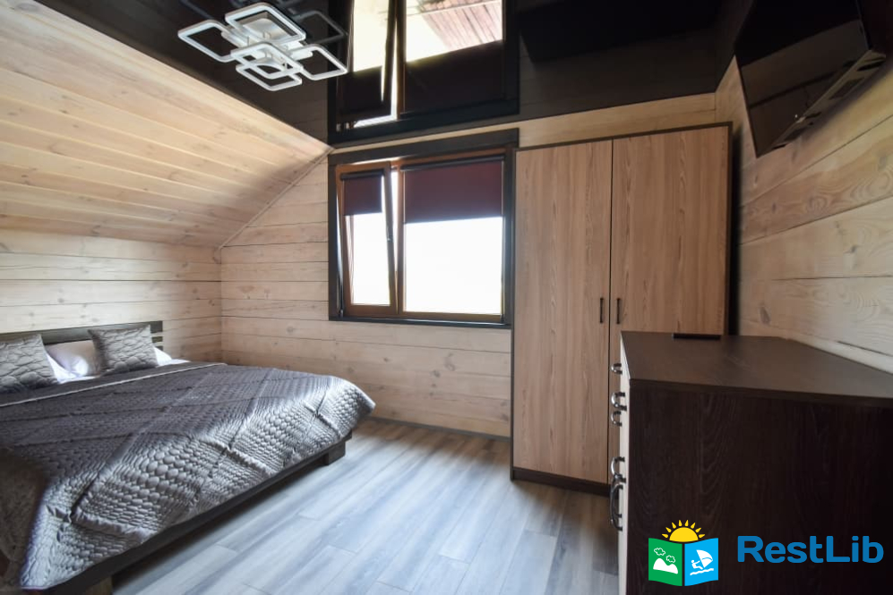 На другому поверсі: 4 двоспальні кімнати (двоспальні ліжка, приліжкові тумбочки, комод, шафа, ТБ, полотенця)