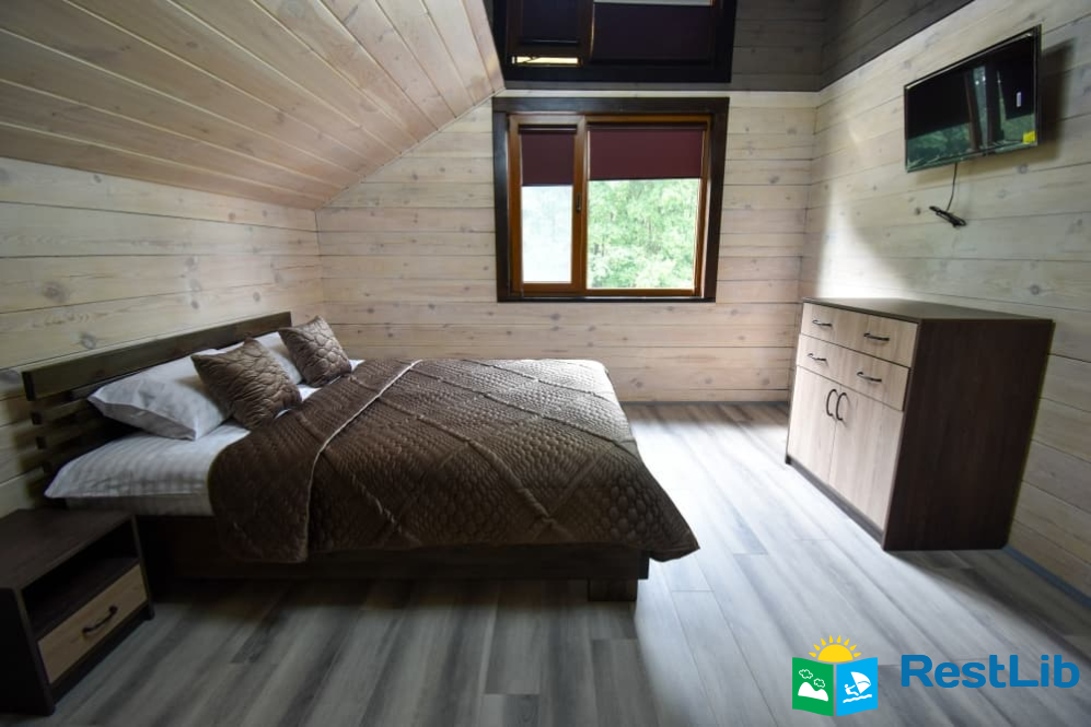 - 4 двоспальні кімнати (двоспальні ліжка, приліжкові тумбочки, комод, шафа, ТБ, полотенця)