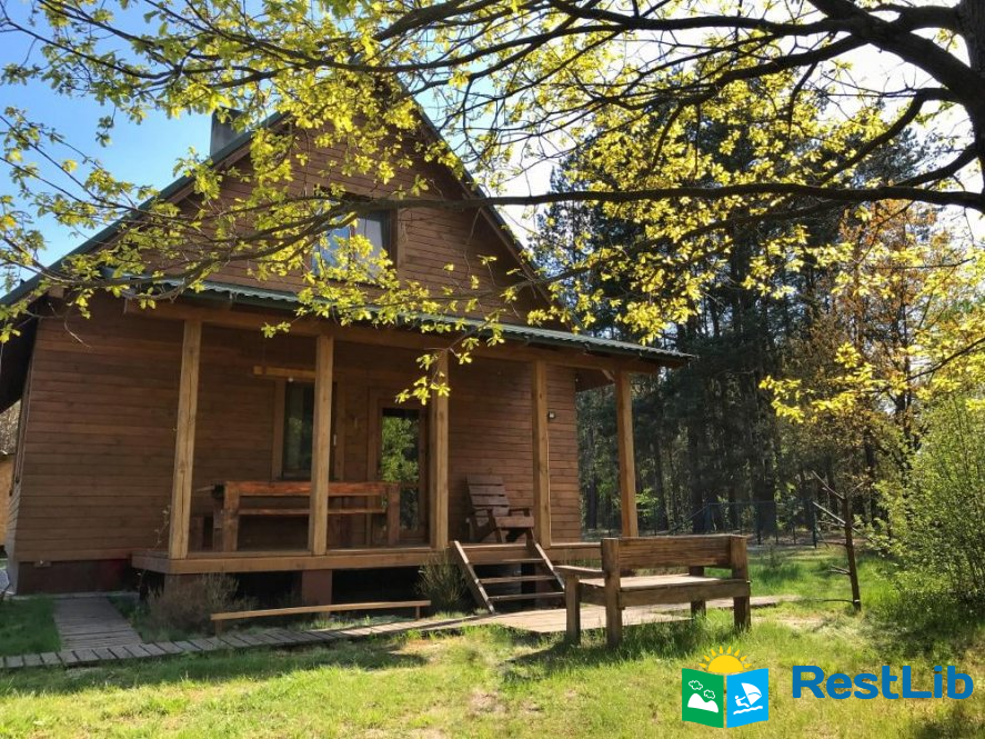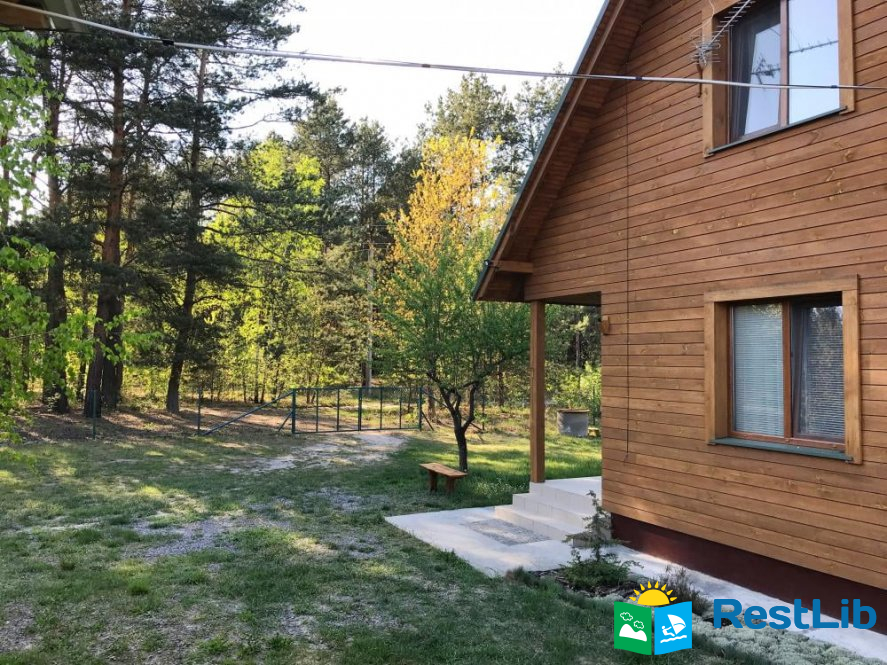 Двоповерховий, дерев'яний будинок, який розташований на затишній території біля самого лісу.