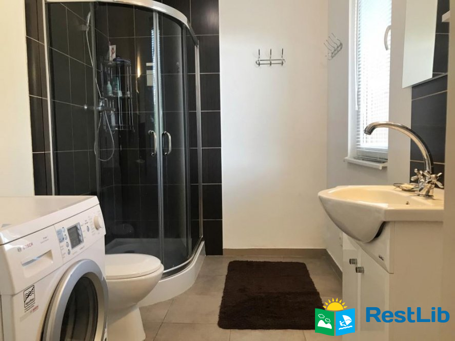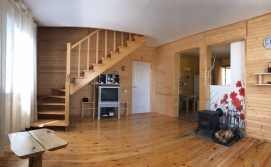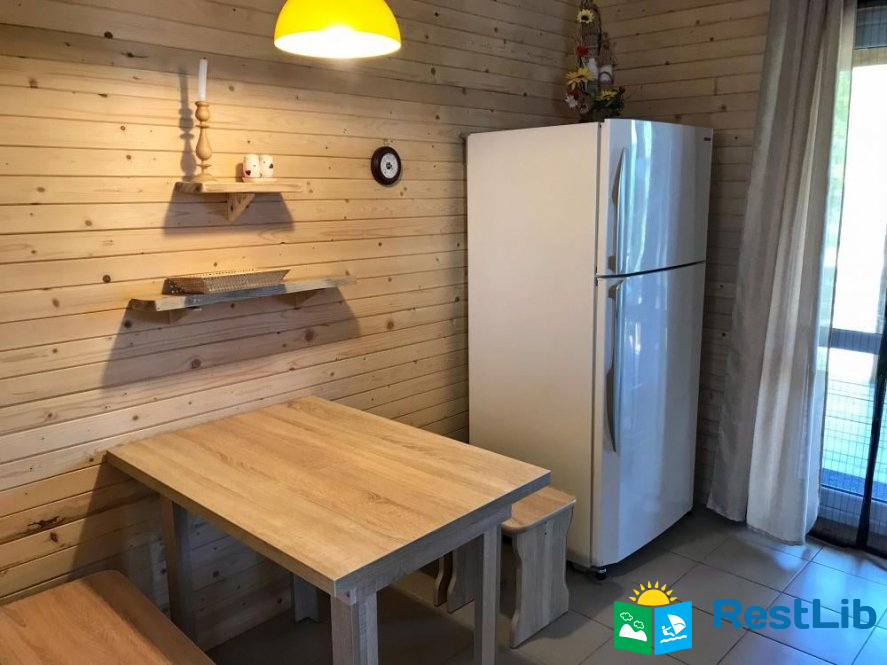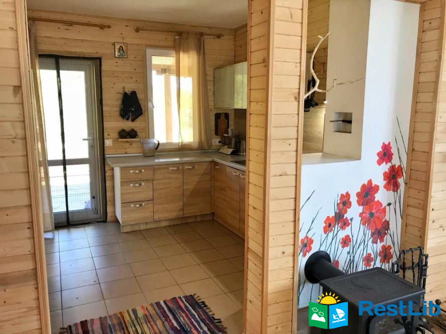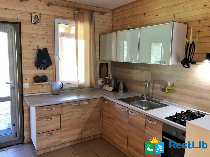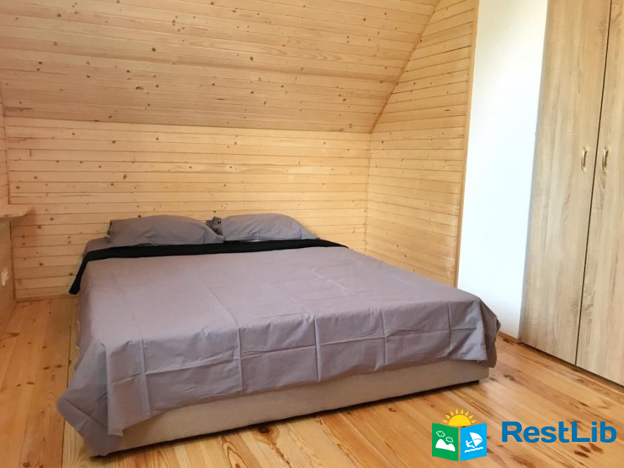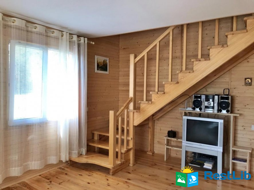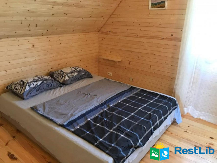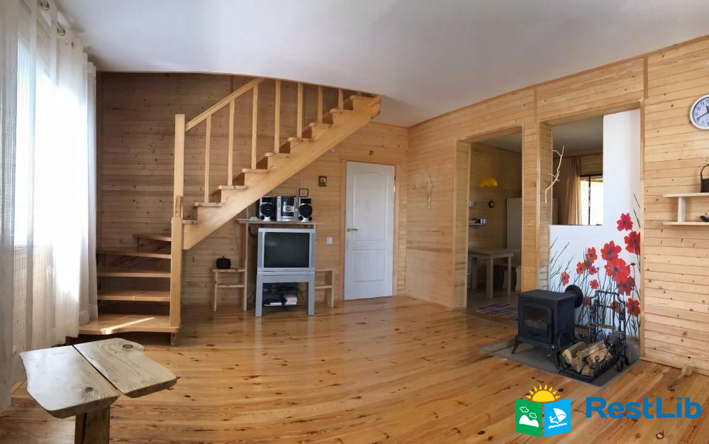 Будинок двоповерховий та зі всіма зручностями для 7 осіб. При необхідності є змога розмістити ще двох осіб. - Ідеально підійде для розміщення 2 сімей. - На першому поверсі знаходиться простора вітальна із пічкою, розкладним диваном та телевізором, повністю оснащена кухня, а також ванна кімната з душем і пральною машинкою. З кухні вихід на терасу, з обіднім столом. - На другому поверсі знаходяться дві спальні. У першій спальні 1 двоспальне та 1 односпальне ліжко. У другій спальні 2 двоспальних ліжка.