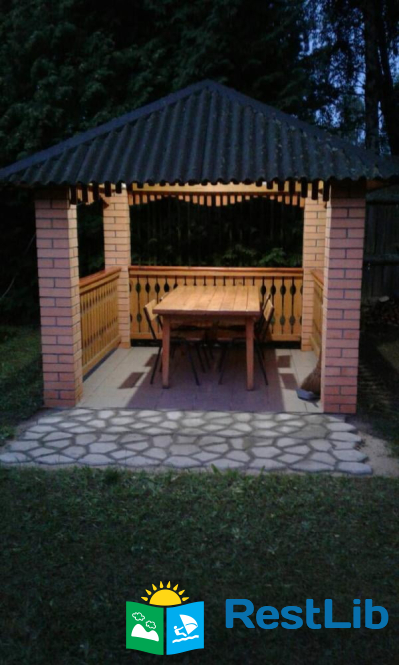 В будинку : (спальня, кухня зі всіма зручностями, душова кімната, альтанка, власне подвір'я зі ставком).