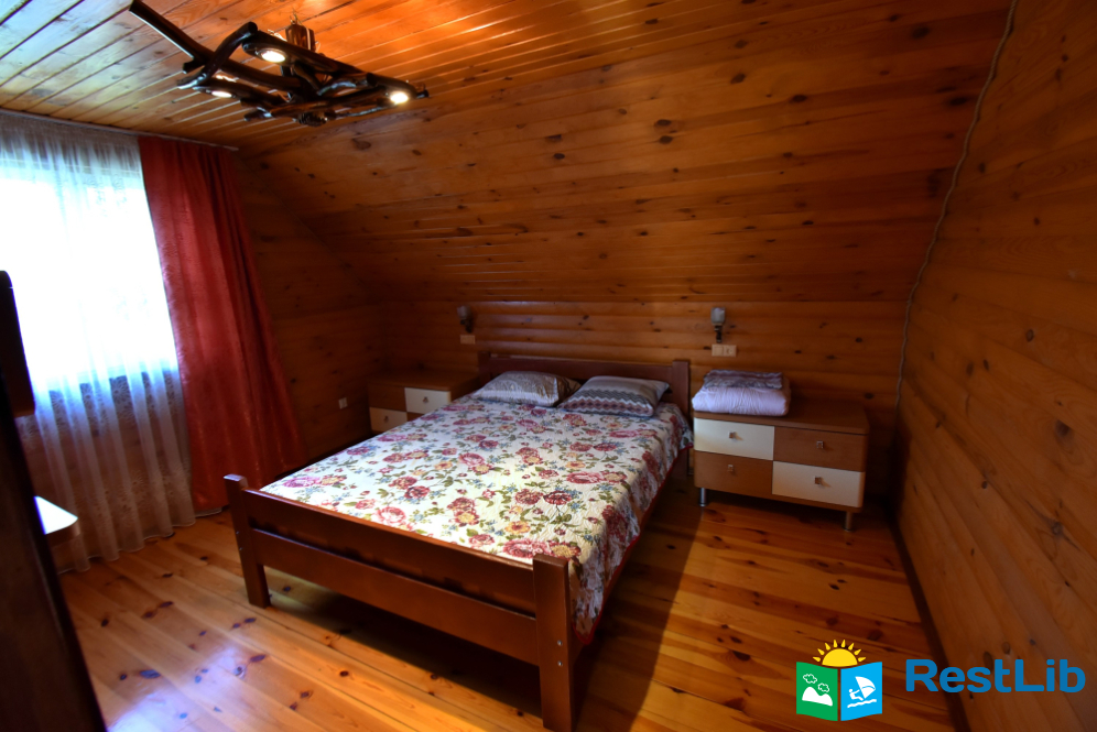 Котедж двоповерховий і розрахований на 8-10 осіб.